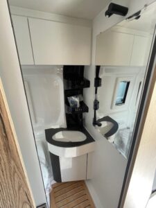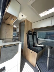 - Celebration Serienausstattun (ABS, ESP, ASR, Fahrer- und Beifahrerairbag, Tempomat, Multifunktions-Lederlenkrad und Lederschaltknauf, Zentralverriegelung, elektrisch verstell- und beheizbare Außenspiegel, LED-Tagfahrlicht, Chromringe im Kombiinstrument, Vorbereitung Rückfahrkamera, 90-Liter Kraftstofftank, Batterietrennschalter, 25-A Ladebooster, 100-Ah Lithiumbatterie, Klimaanlage im Fahrerhaus, drehbare Captain-Chair Sitze, USB-Anschluss im Armaturenbrett, Smartphone-/Tablethalter und Getränkehalter, LED-Außenlichtleiste, elektrische Trittstufe, Möbeldesign Ahorn, Oberschrankklappen in Weiß matt mit silbernem Profil, Softtouchverkleidung im Schlafbereich, hochfeste Tisch- und Arbeitsplatten aus HPL, Lamellenschiebetür im Bad, Dachfenster und Dachhauben vorne und hinten, Kompressorkühlschrank, 2×230-V Steckdosen, 1×USB-Steckdose, 1×12-V Steckdose, Schiebetür mit Fliegenschutztür, Verdunkelungsrollos im Fahrerhaus.)
