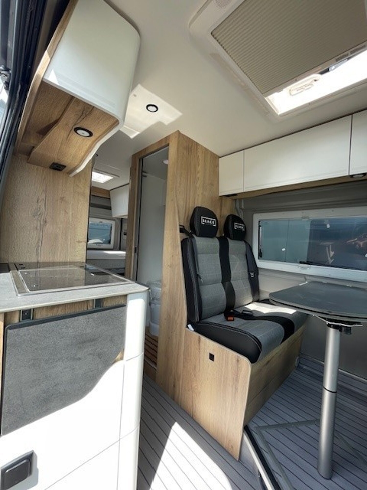 - Black Edition [Isofix Serienbank, Einlegeboden Duschtasse, Ambientebeleuchtung, Holz Eiche Halifax, Design-Paket (Dunkle Arbeitsplatte und Tischplatte), Stoff Teilleder Sitzbezug)