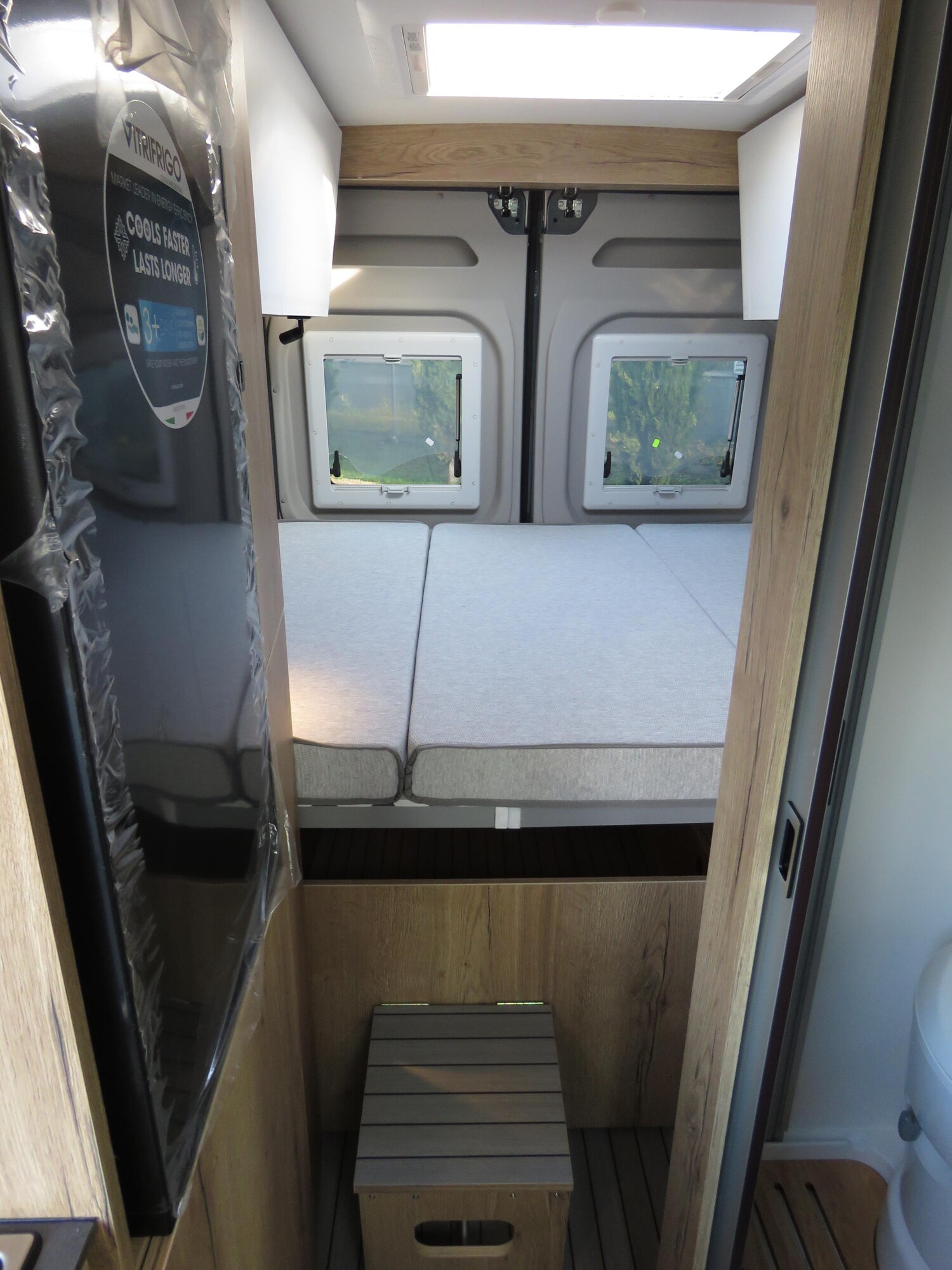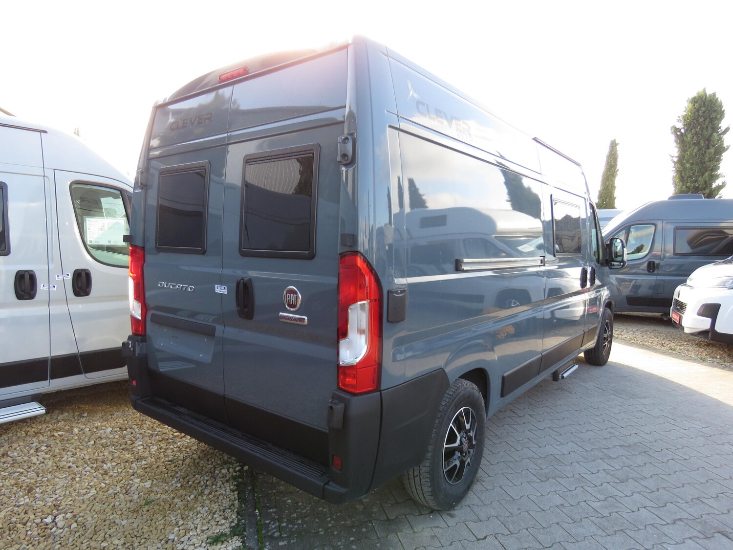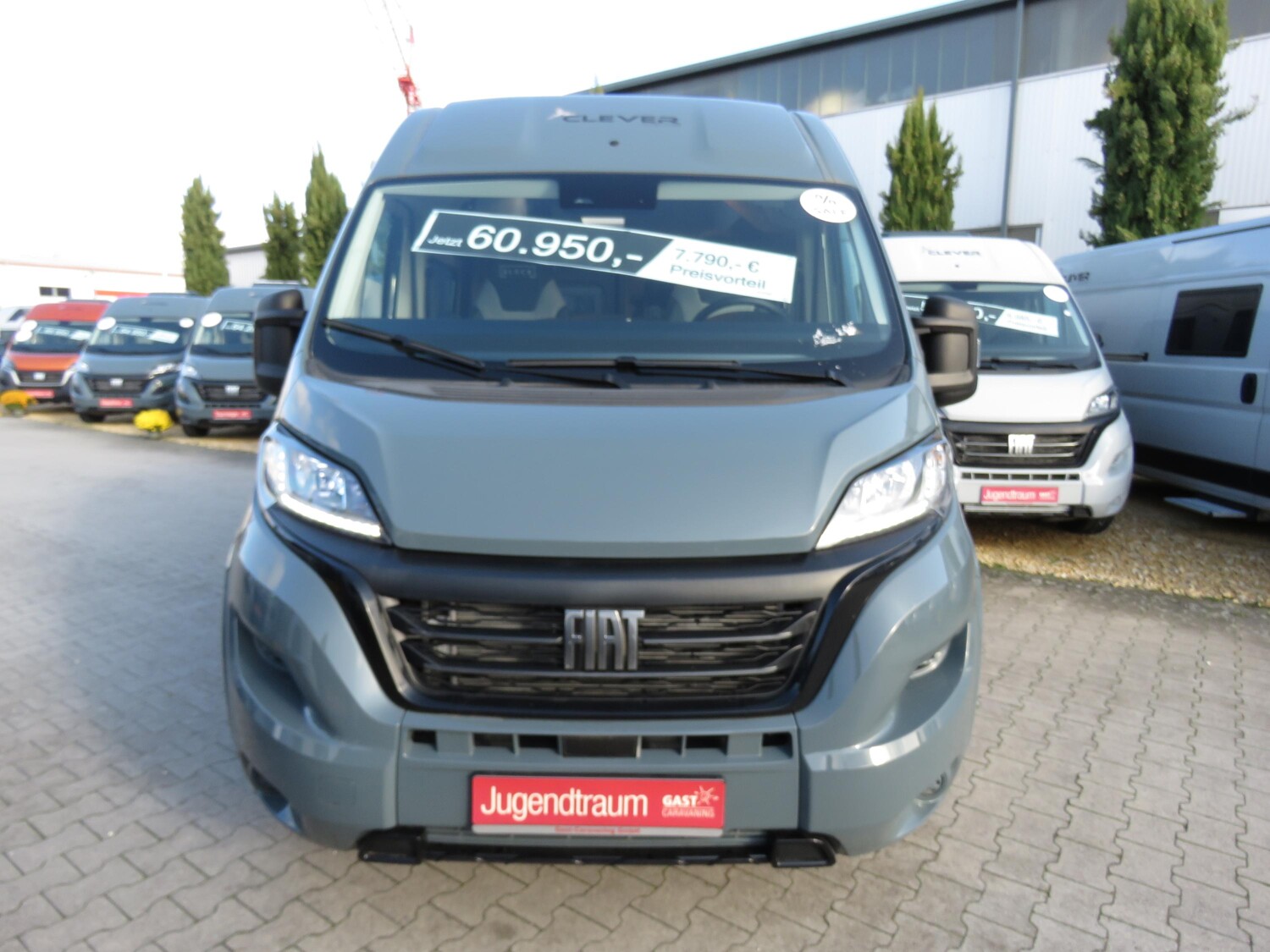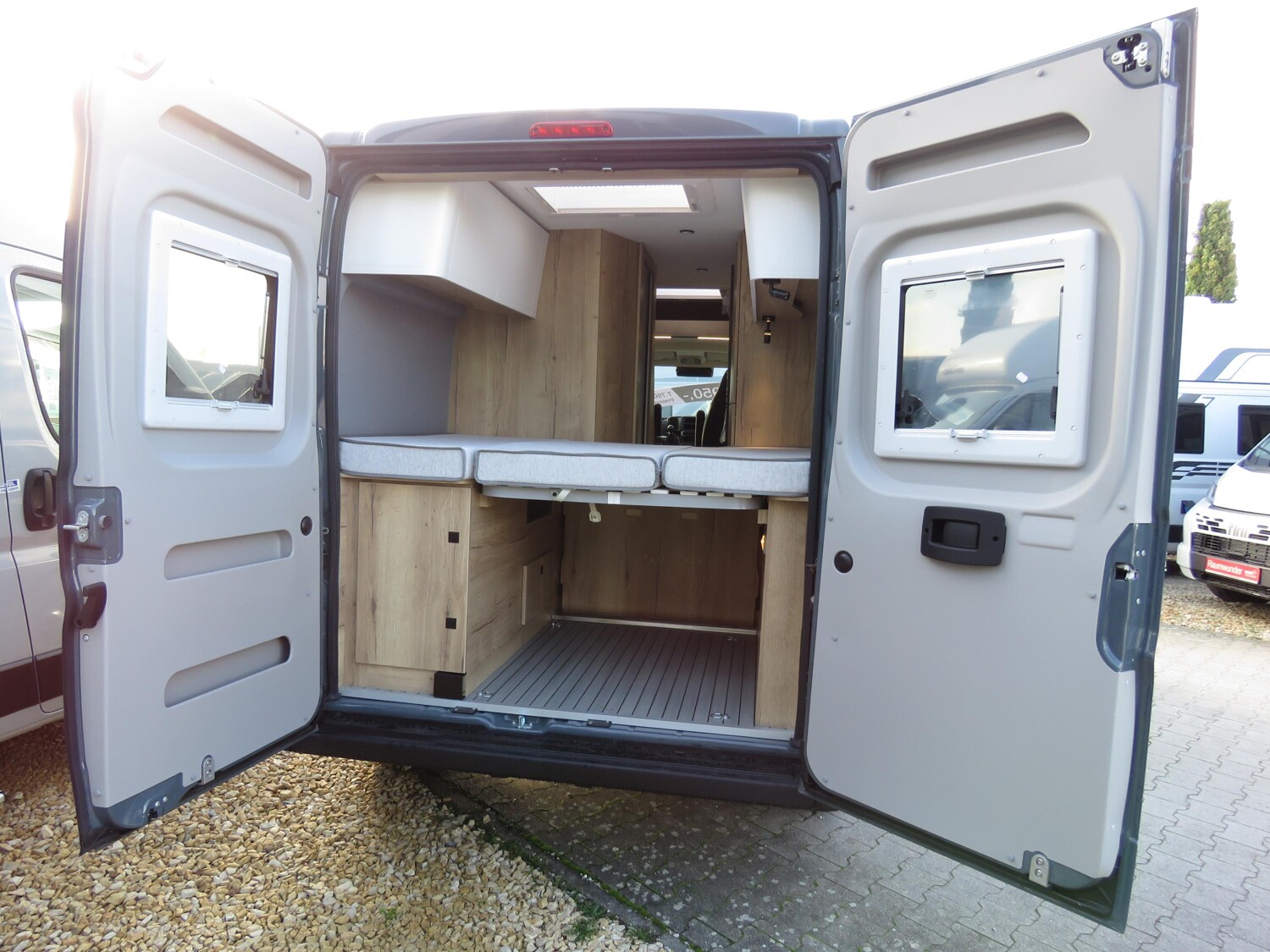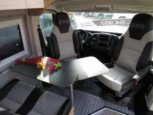 • Celebration-Serienausstattung (ABS, ESP, ASR, Fahrer- und Beifahrerairbag, Tempomat, Multifunktions-Lederlenkrad und Lederschaltknauf, Zentralverriegelung, elektrisch verstell- und beheizbare Außenspiegel, LED-Tagfahrlicht, Chromringe im Kombiinstrument, Vorbereitung Rückfahrkamera, 90-Liter Kraftstofftank, Batterietrennschalter, 25-A Ladebooster, 100-Ah Lithiumbatterie, Klimaanlage im Fahrerhaus, drehbare Captain-Chair Sitze, USB-Anschluss im Armaturenbrett, Smartphone-/Tablethalter und Getränkehalter, LED-Außenlichtleiste, elektrische Trittstufe, Möbeldesign Ahorn, Oberschrankklappen in Weiß matt mit silbernem Profil, Softtouchverkleidung im Schlafbereich, hochfeste Tisch- und Arbeitsplatten aus HPL, Lamellenschiebetür im Bad, Dachfenster und Dachhauben vorne und hinten, Kompressorkühlschrank, 2×230-V Steckdosen, 1×USB-Steckdose, 1×12-V Steckdose, Schiebetür mit Fliegenschutztür, Verdunkelungsrollos im Fahrerhaus.)