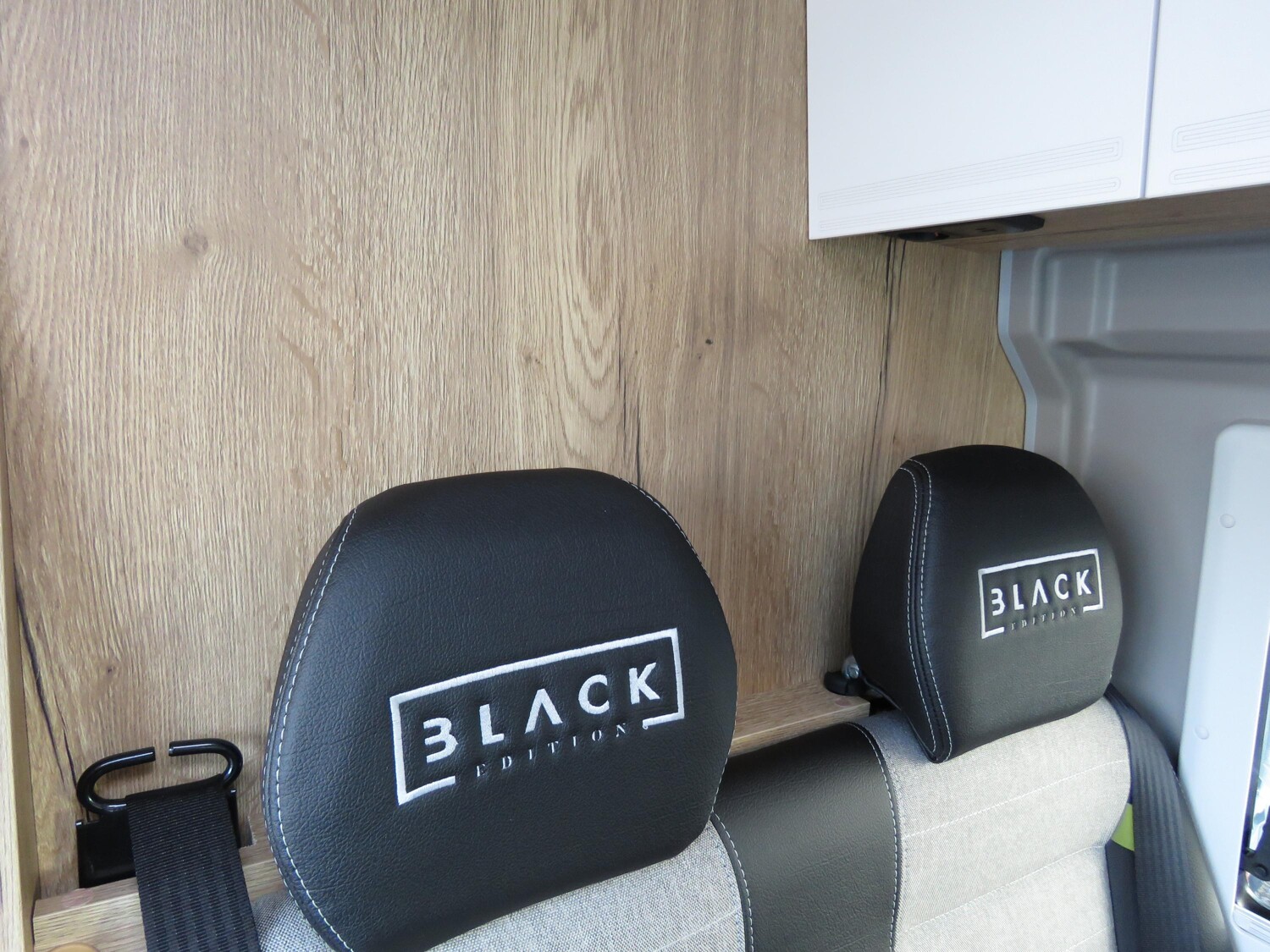 • Black Edition [Isofix Serienbank, Einlegeboden Duschtasse, Ambientebeleuchtung, Holz Eiche Halifax, Design-Paket (Dunkle Arbeitsplatte und Tischplatte), Stoff Teilleder Sitzbezug)