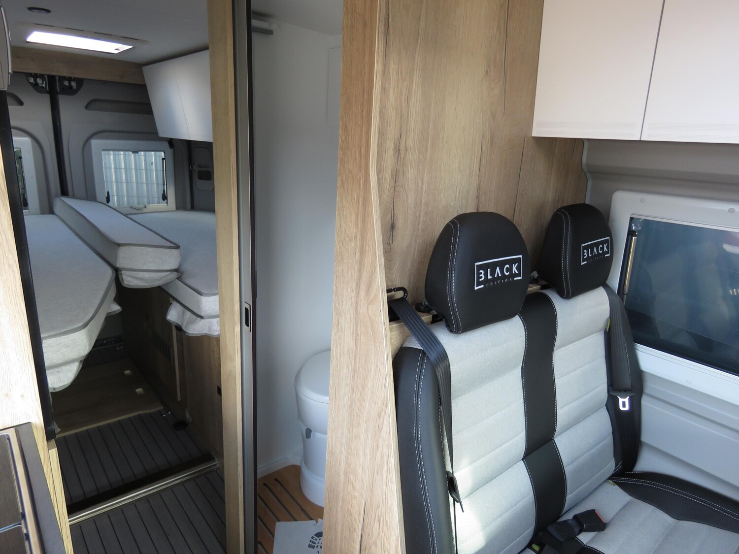 - Black Edition [Isofix Serienbank, Einlegeboden Duschtasse, Ambientebeleuchtung, Holz Eiche Halifax, Design-Paket (Dunkle Arbeitsplatte und Tischplatte), Stoff Teilleder Sitzbezug)