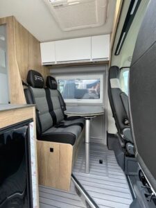 - ABS, ESP, ASR, Überschlagschutz, adaptive Lastkontrolle, Berganfahr- und Abfahrhilfe, Reifendruckkontrollsystem (TPMS), 2,2 l Multijet Diesel mit 140 PS, 6-Gang-Schaltgetriebe, 90 l Kraftstofftank, 15 l AdBlue-Tank, Fahrer- und Beifahrerairbag, Tempomat mit Geschwindigkeitsbegrenzer, manuelle Klimaanlage, elektrische Fensterheber, elektrisch verstell- und beheizbare Außenspiegel, Zentralverriegelung mit Funkfernbedienung, LED-Tagfahrlicht, LED-Außenbeleuchtung, Lederlenkrad und Lederschaltknauf, Multifunktionslenkrad mit Chromringen, 16? Alufelgen, drehbare Captain-Chair-Sitze mit integrierter Drehkonsole, Sitzbezüge in Stoff grau, Rollo-Verdunkelung im Fahrerhaus, Radiovorbereitung mit DAB-Antenne, Vorbereitung für Rückfahrkamera, LED-Eingangsbeleuchtung, Insektenschutztür, Softtouch-Wandverkleidung im Schlafbereich, Seitz-Rahmenfenster mit Verdunkelungsrollo und Insektenschutz, Dachhauben mit Verdunkelung und Fliegenschutz, Querbett im Heck 194 × 140 cm, Küchenblock mit HPL-Arbeitsplatte und Edelstahlspüle, 2-flammiger Gasherd mit Glasabdeckung, Kompressorkühlschrank, Kleiderschrank und Oberschränke, Bad mit Lamellen-Schiebetür, Cassettentoilette mit herausnehmbarem Fäkalientank, Waschbecken, Spiegel, LED-Innenbeleuchtung, Gasflaschenkasten für 2×11 kg Flaschen, Truma Combi 4 Heizung, Truma iNet-X-Bedienpanel, 100 Ah Lithium-Batterie, Batterie-Trennschalter, 25 A Ladebooster, 16 A Ladegerät, 12 V- und USB-Steckdosen im Fahrerhaus und Wohnbereich, 230 V-Steckdosen in Küche und Sitzgruppe, 100 l Frischwassertank, 90 l Abwassertank, Möbelbau aus 15 mm Sperrholz mit HPL-Oberfläche, Ablagen und Schranklösungen.