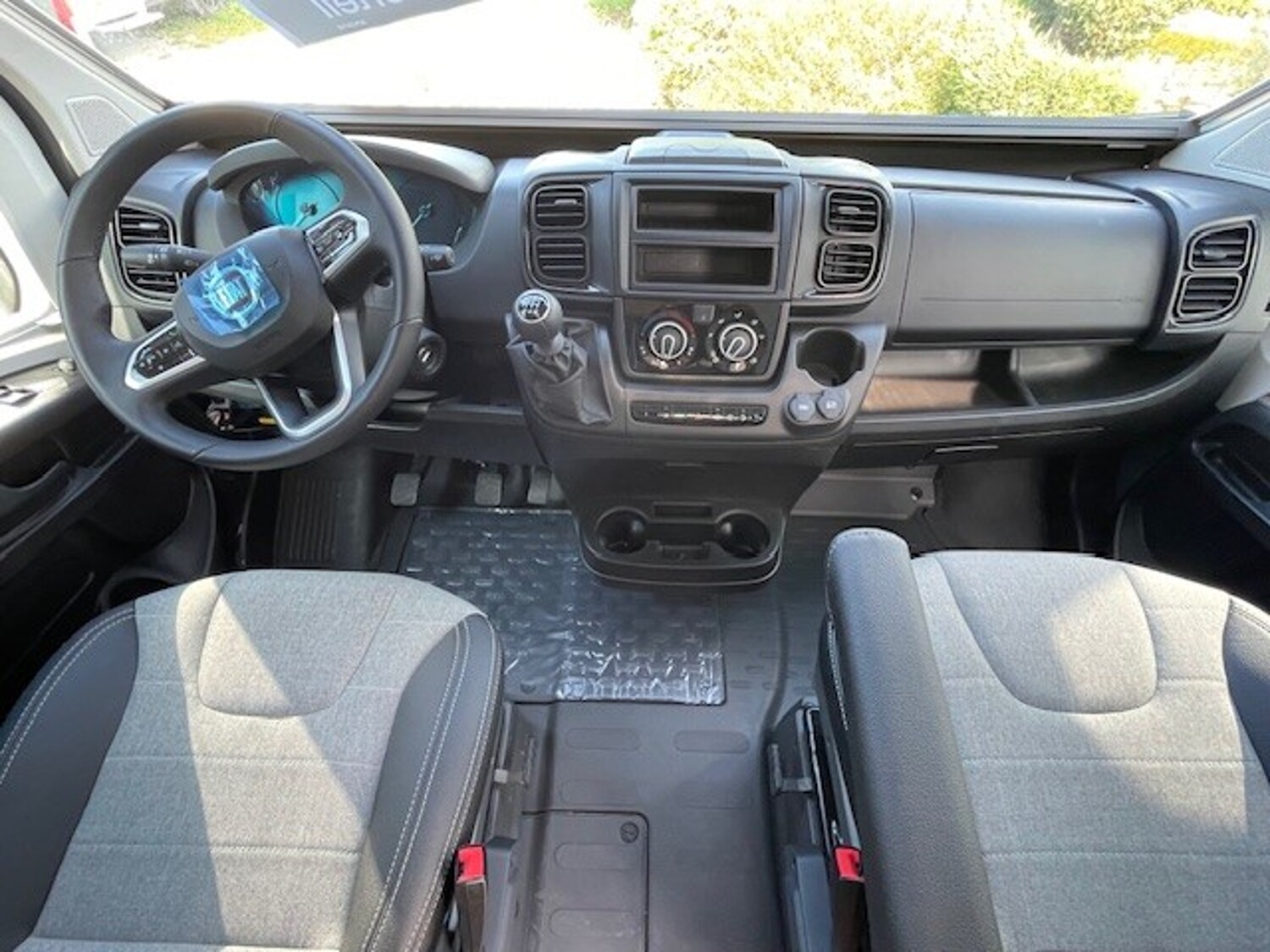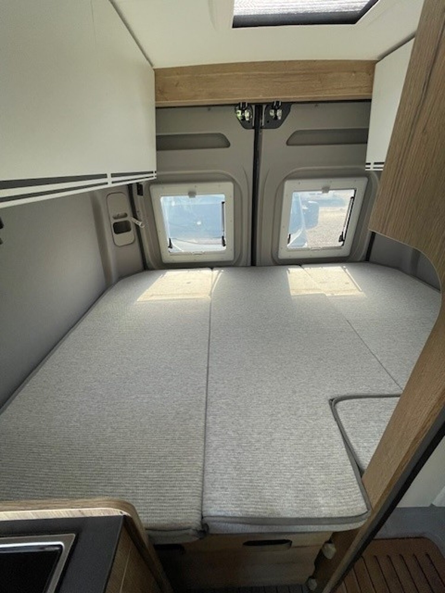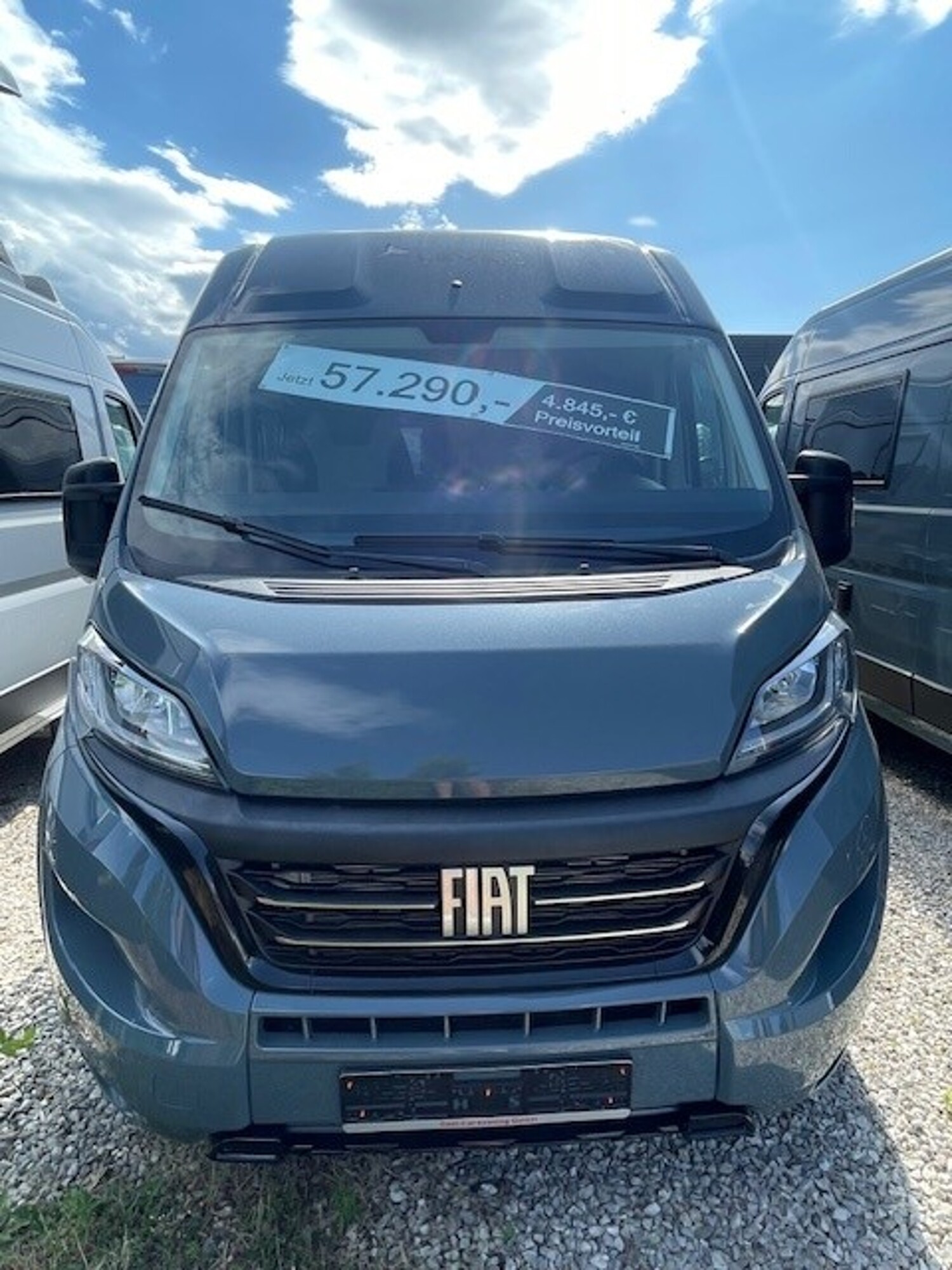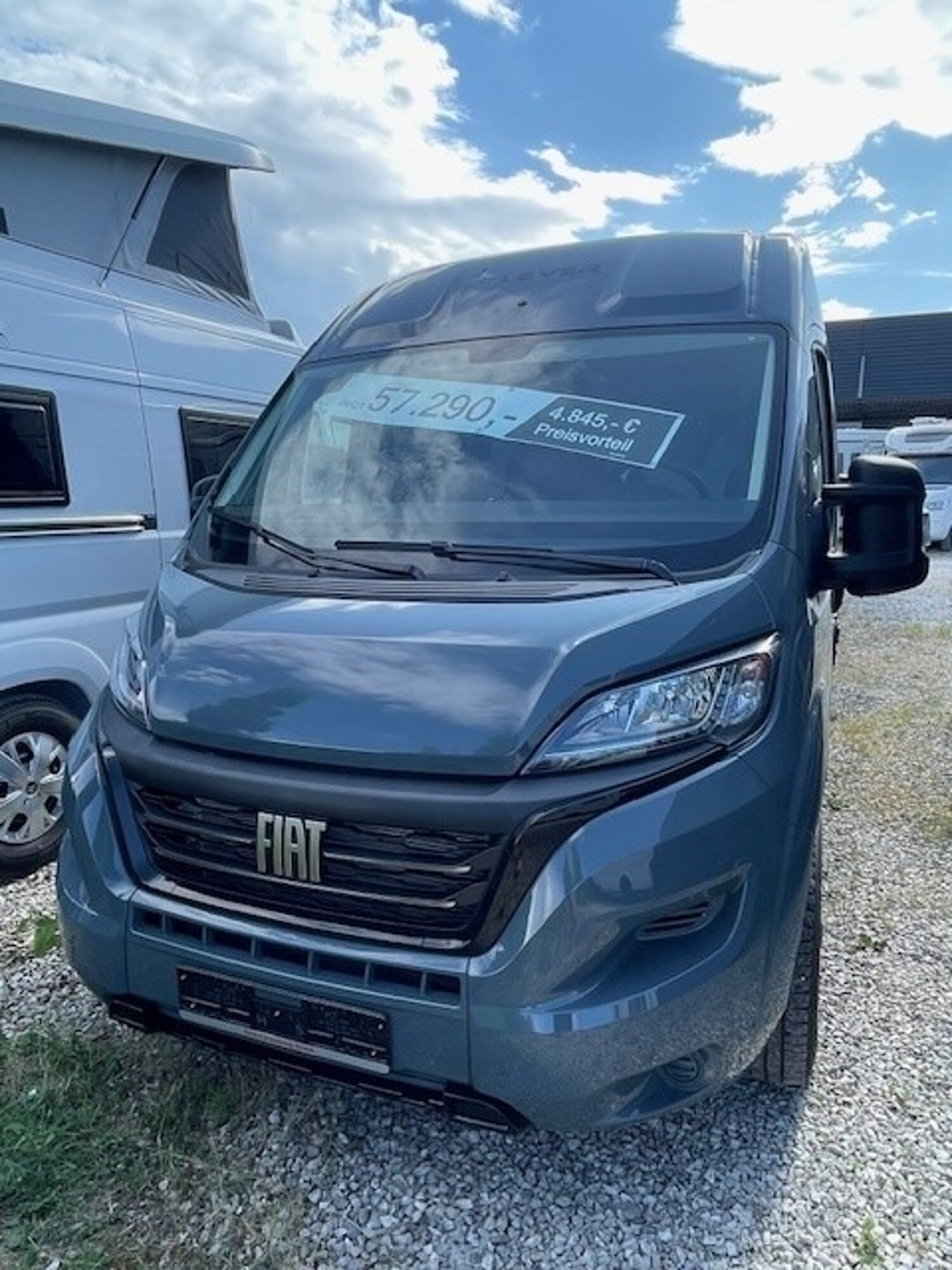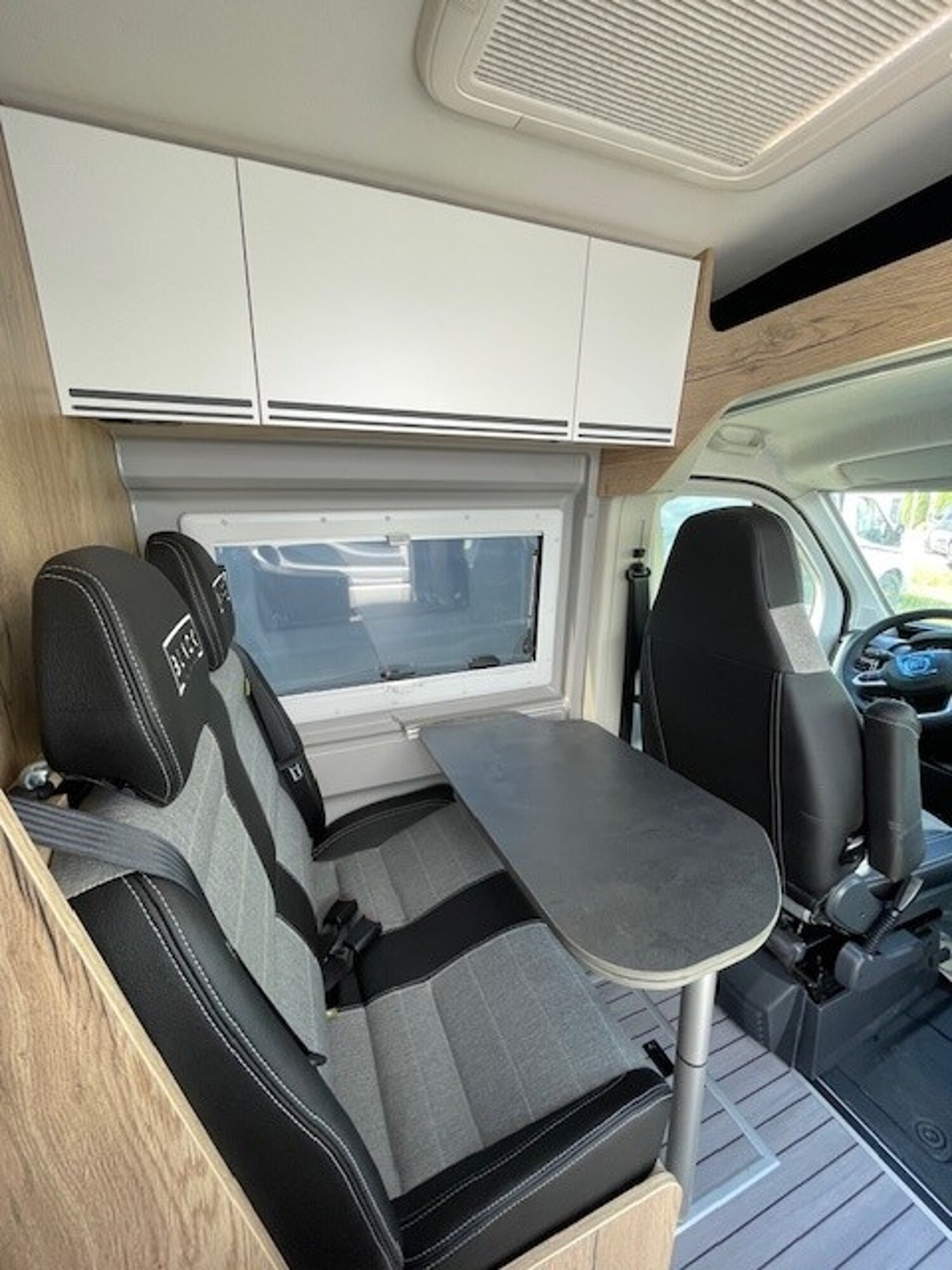 - ABS, ESP, ASR, Überschlagschutz, adaptive Lastkontrolle, Berganfahr- und Abfahrhilfe, Reifendruckkontrollsystem (TPMS), 2,2 l Multijet Diesel mit 140 PS, 6-Gang-Schaltgetriebe, 90 l Kraftstofftank, 15 l AdBlue-Tank, Fahrer- und Beifahrerairbag, Tempomat mit Geschwindigkeitsbegrenzer, manuelle Klimaanlage, elektrische Fensterheber, elektrisch verstell- und beheizbare Außenspiegel, Zentralverriegelung mit Funkfernbedienung, LED-Tagfahrlicht, LED-Außenbeleuchtung, Lederlenkrad und Lederschaltknauf, Multifunktionslenkrad mit Chromringen, 16? Alufelgen, drehbare Captain-Chair-Sitze mit integrierter Drehkonsole, Sitzbezüge in Stoff grau, Rollo-Verdunkelung im Fahrerhaus, Radiovorbereitung mit DAB-Antenne, Vorbereitung für Rückfahrkamera, LED-Eingangsbeleuchtung, Insektenschutztür, Softtouch-Wandverkleidung im Schlafbereich, Seitz-Rahmenfenster mit Verdunkelungsrollo und Insektenschutz, Dachhauben mit Verdunkelung und Fliegenschutz, Querbett im Heck 194 × 140 cm, Küchenblock mit HPL-Arbeitsplatte und Edelstahlspüle, 2-flammiger Gasherd mit Glasabdeckung, Kompressorkühlschrank, Kleiderschrank und Oberschränke, Bad mit Lamellen-Schiebetür, Cassettentoilette mit herausnehmbarem Fäkalientank, Waschbecken, Spiegel, LED-Innenbeleuchtung, Gasflaschenkasten für 2×11 kg Flaschen, Truma Combi 4 Heizung, Truma iNet-X-Bedienpanel, 100 Ah Lithium-Batterie, Batterie-Trennschalter, 25 A Ladebooster, 16 A Ladegerät, 12 V- und USB-Steckdosen im Fahrerhaus und Wohnbereich, 230 V-Steckdosen in Küche und Sitzgruppe, 100 l Frischwassertank, 90 l Abwassertank, Möbelbau aus 15 mm Sperrholz mit HPL-Oberfläche, Ablagen und Schranklösungen.