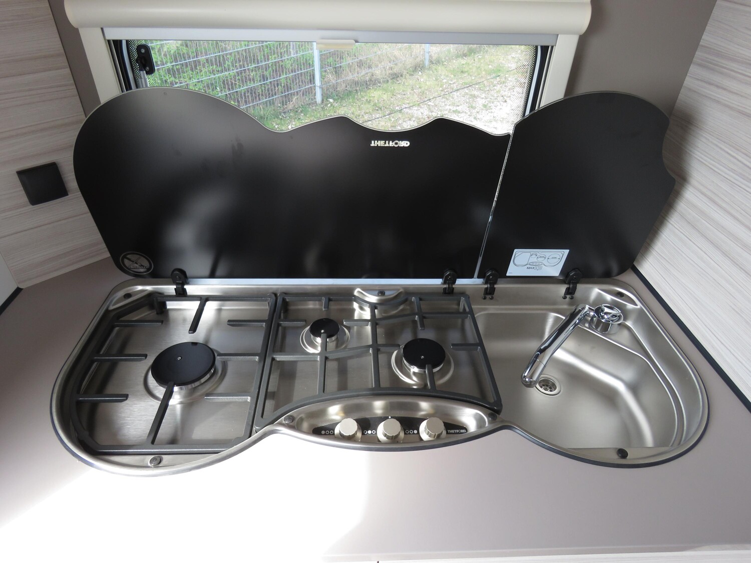 - Active-Paket 420 QSH (Auflastung 1.360 kg (ohne Fahrgestelländerung), Radzierblenden für 14″ Bereifung, Sicherheitskupplung, Stoßdämpfer, Bugfenster, Dachhaube, 700 x 500 mm, Fliegengittertüre, Stauraumklappe vorne rechts 1000×420 mm, Warmluftanlage, USB Steckdose für Spot-Schiene, Zusätzliche Beleuchtung durch LED-Spots, Großer 44 l Frischwassertank, Mobiler 22 l Abwassertank, Warmwasserversorgung)