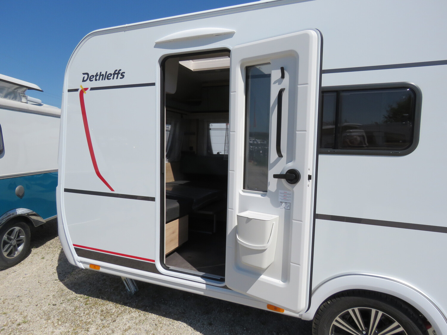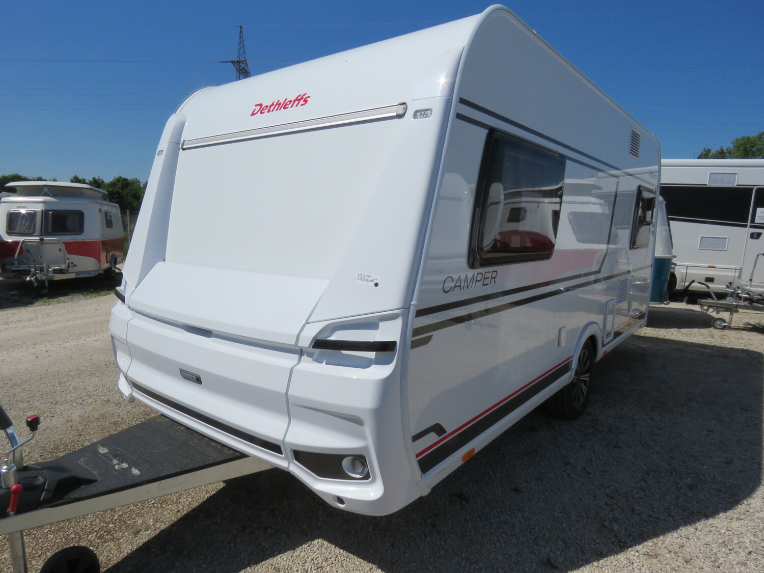 - First Edition Paket 460 EL (Deichselabdeckung, Auflastung 1.700 kg (inkl. Stahlrad 195 R14 C LI106), 17″ Alufelgen im Dethleffs-Design (Einachser), Breite Wohnraumeingangstüre mit Fenster, einteilig, Bettumbau Einzelbetten zu Doppelbett, Einbau Klimaanlage vorbereitet, Elektrische Fußbodenerwärmung, Multifunktionsschale 2 Stück, Duschausstattung inkl. Duscharmatur und -vorhang, City-Wasseranschluss)