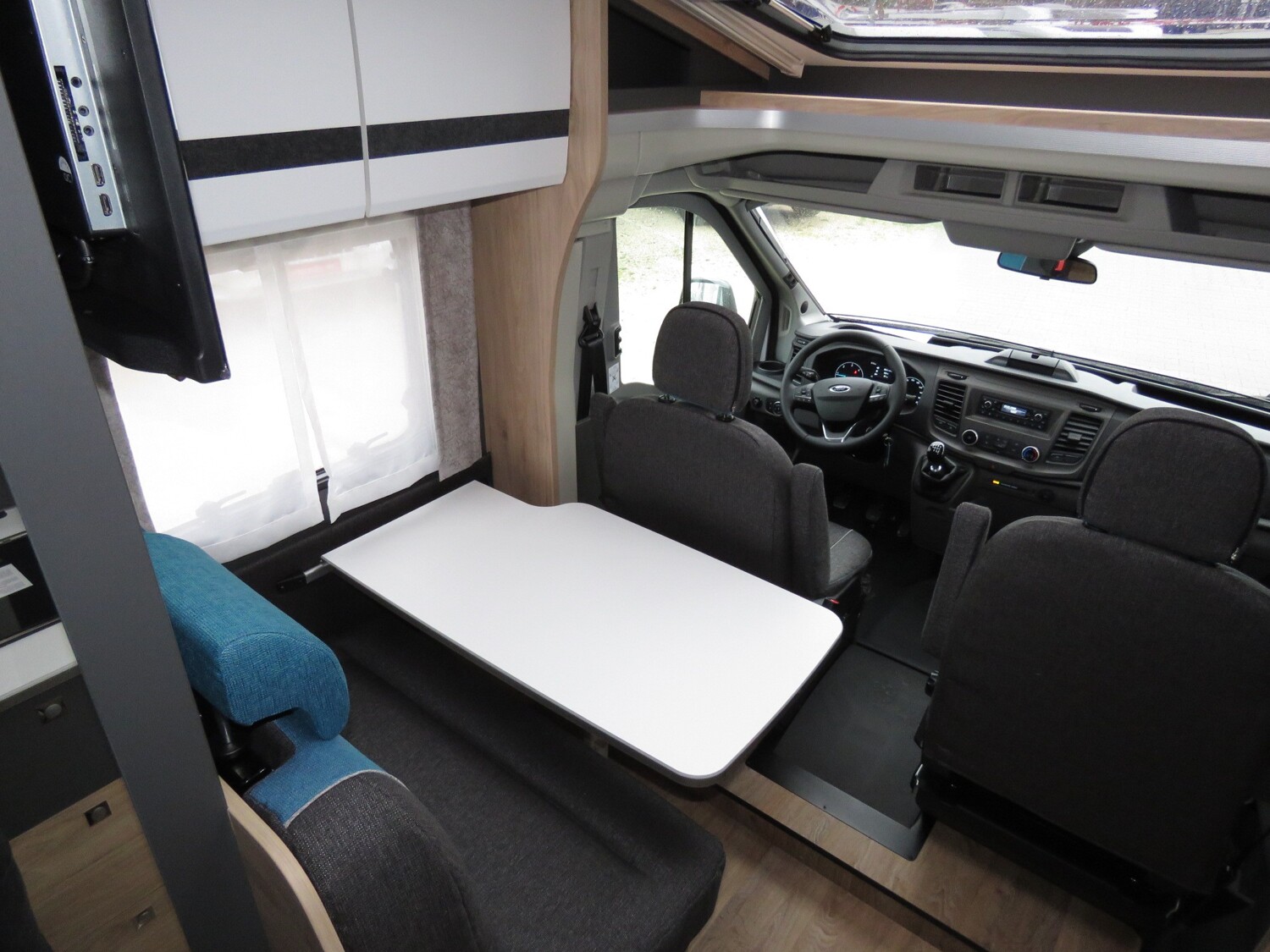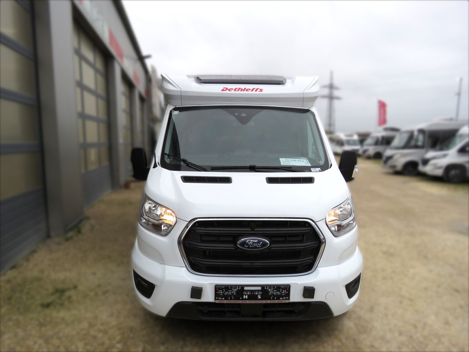 • Comfort Paket (Alufelge Ford 16 Zoll schwarz, Klimaanlage inkl. Staub- und Pollenfilter, Handschuhfach mit Deckel abschließbar, Innenraumpaket Trend-Line, Seitenschutzleisten in Wagenfarbe lackiert, Stoßfänger vorn in Wagenfarbe lackiert inkl. Nebelscheinwerfer, Beifahrerairbag, Wohnraumtür mit Fenster inkl. Verdunkelung und Zentralverriegelung (inkl. Fahrerhaustüre), Ausstellfenster in der T-Haube, Verdunklungsjalousien im Fahrerhaus, Panorama-Dachhaube 70×50 cm im Wohnraum, Stauraum-Türe links, Wohnwelt Salerno inkl. Fahrer- und Beifahrer-Sitzbezug, Indirekte Wandflächen-Ambiente-Beleuchtung, Indirekte Ambiente-Beleuchtung über den Dachstauschränken, Frontscheibe beheizbar, Scheibenwischer mit Regensensor, Notbrems-Assistent aktiv (kamerabasiert), Fahrspur-Assistent mit Müdigkeitswarner, Fernlicht-Assistent und Fahrspurhalte-Assistent, Scheinwerfer-Assistent mit Tag/Nacht-Sensor, Scheinwerfer mit statischem Abbiegelicht, Außenspiegel elektrisch einstellbar und beheizbar, Bettumbau Einzelbett zu Doppelbett (nur bei T45))