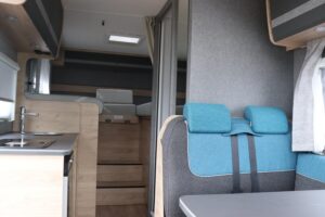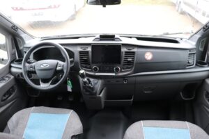 - Comfort Paket T 6615 EB (Klimaanlage inkl. Staub- und Pollenfilter, Handschuhfach mit Deckel, abschließbar, Innenraumpaket Trend-Line, Seitenschutzleisten in Wagenfarbe lackiert, Stoßfänger vorn in Wagenfarbe lackiert, Nebelscheinwerfer, Scheinwerfer mit statischem Abbiegelicht, Außenspiegel elektrisch einstellbar und beheizbar, Alufelge Ford 16 Zoll, schwarz, Frontscheibe, beheizbar, Scheibenwischer mit Regensensor, Notbrems-Assistent, aktiv (kamerabasiert), Fahrspur-Assistent mit Müdigkeitswarner, Fernlicht-Assistent und Fahrspurhalte-Assistent, Scheinwerfer-Assistent mit Tag/Nacht-Sensor, Wohnraumtür mit Fenster inkl. Verdunkelung und Zentralverriegelung (inkl. Fahrerhaustüre), Panorama-Dachhaube 70 x 50 cm im Wohnraum, Wohnwelt Salerno inkl. Fahrer- und Beifahrer-Sitzbezug, Light Moments: Indirekte Wandflächen-Ambientebeleuchtung, Light Moments: Indirekte Ambientebeleuchtung über den Dachstauschränken, Verdunklungsjalousien im Fahrerhaus, Ausstellfenster in der T-Haube, Gemütliche L-Sitzgruppe mit freistehendem, absenkbarem Tischfuß und 2 integrierte 3-Punkt-Gurte, Bettumbau Einzelbetten zu Doppelbett, Stauraum-Türe links)
