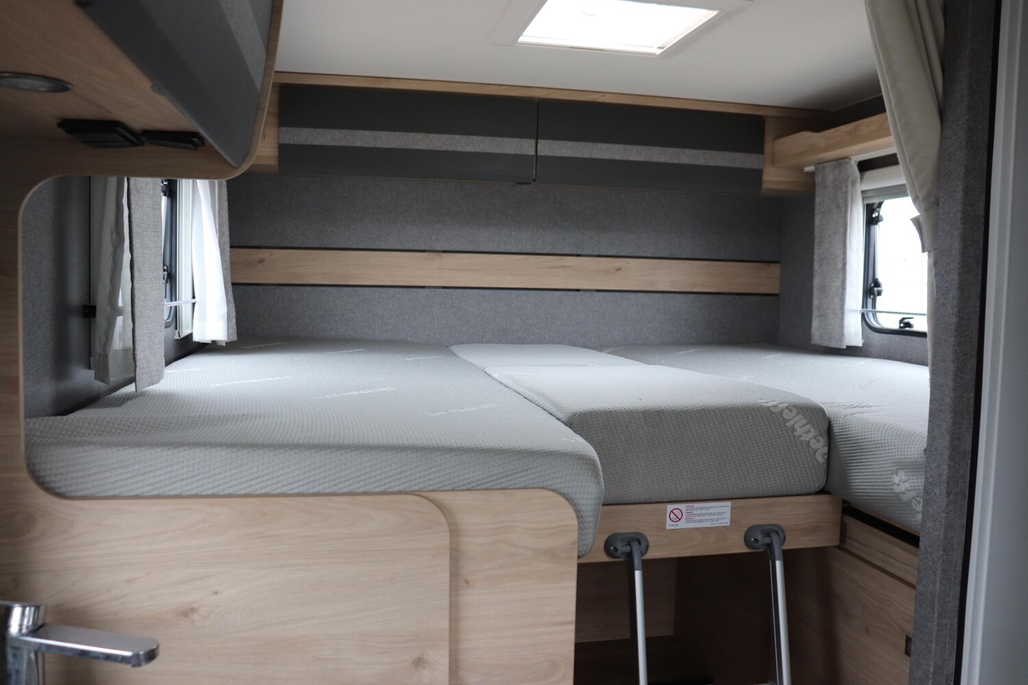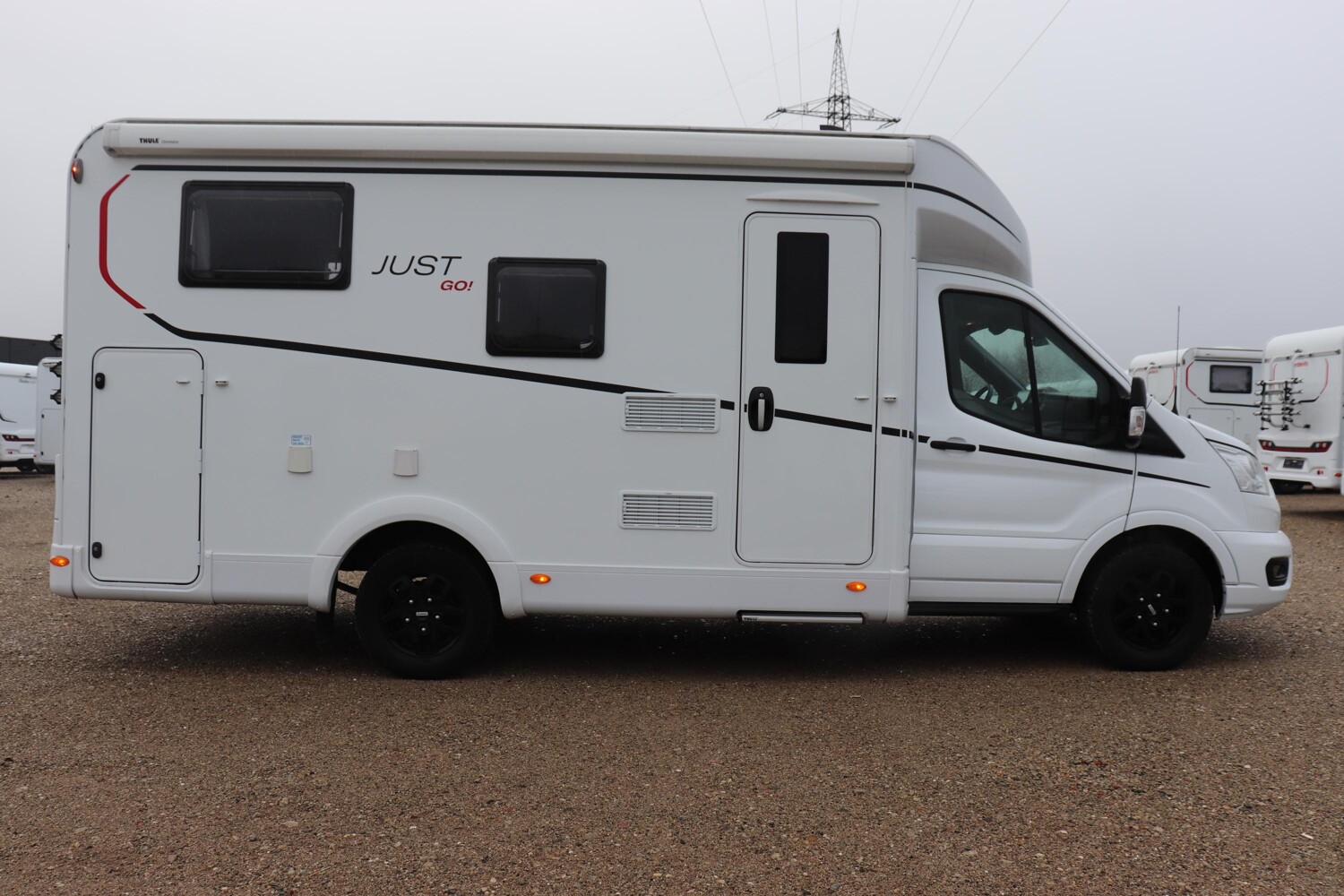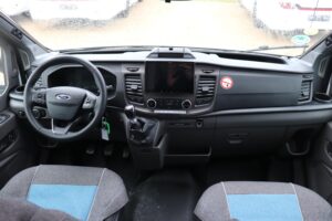 • Comfort Paket T 6615 EB (Klimaanlage inkl. Staub- und Pollenfilter, Handschuhfach mit Deckel, abschließbar, Innenraumpaket Trend-Line, Seitenschutzleisten in Wagenfarbe lackiert, Stoßfänger vorn in Wagenfarbe lackiert, Nebelscheinwerfer, Scheinwerfer mit statischem Abbiegelicht, Außenspiegel elektrisch einstellbar und beheizbar, Alufelge Ford 16 Zoll, schwarz, Frontscheibe, beheizbar, Scheibenwischer mit Regensensor, Notbrems-Assistent, aktiv (kamerabasiert), Fahrspur-Assistent mit Müdigkeitswarner, Fernlicht-Assistent und Fahrspurhalte-Assistent, Scheinwerfer-Assistent mit Tag/Nacht-Sensor, Wohnraumtür mit Fenster inkl. Verdunkelung und Zentralverriegelung (inkl. Fahrerhaustüre), Panorama-Dachhaube 70 x 50 cm im Wohnraum, Wohnwelt Salerno inkl. Fahrer- und Beifahrer-Sitzbezug, Light Moments: Indirekte Wandflächen-Ambientebeleuchtung, Light Moments: Indirekte Ambientebeleuchtung über den Dachstauschränken, Verdunklungsjalousien im Fahrerhaus, Ausstellfenster in der T-Haube, Gemütliche L-Sitzgruppe mit freistehendem, absenkbarem Tischfuß und 2 integrierte 3-Punkt-Gurte, Bettumbau Einzelbetten zu Doppelbett, Stauraum-Türe links)