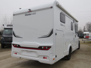 • Serienausstattung Glücksmobil (Zenec Navi inkl. DAB+ und Truck Navigation, Rückfahrkamera (einfach, Rahmenfenster inkl. Küchenrückwand, Cassettenmarkise 4,0m manuell, 16 Zoll Alufelgen, Aufbautüre mit Fenster und Zentralverriegelung, Verdunkelungsjalousien im Fahrerhaus, Panorama-Dachhaube 70x50cm im Wohnraum, L-Sitzgruppe, Garagenklappe links, Indirekte Beleuchtung, Indirekte Gardinen-Beleuchtung o. Dimmung, CP Plus, Duschrost, Vorb. Solaranlage, Vorb. Dach-Klimaanlage, Ausstellfenster in der T-Haube, Küchenrückwand beleuchtet, Wohnwelt Heron, GT Abklebung, Bettenumbau EB zu DB, Glücksmobil Beklebung)