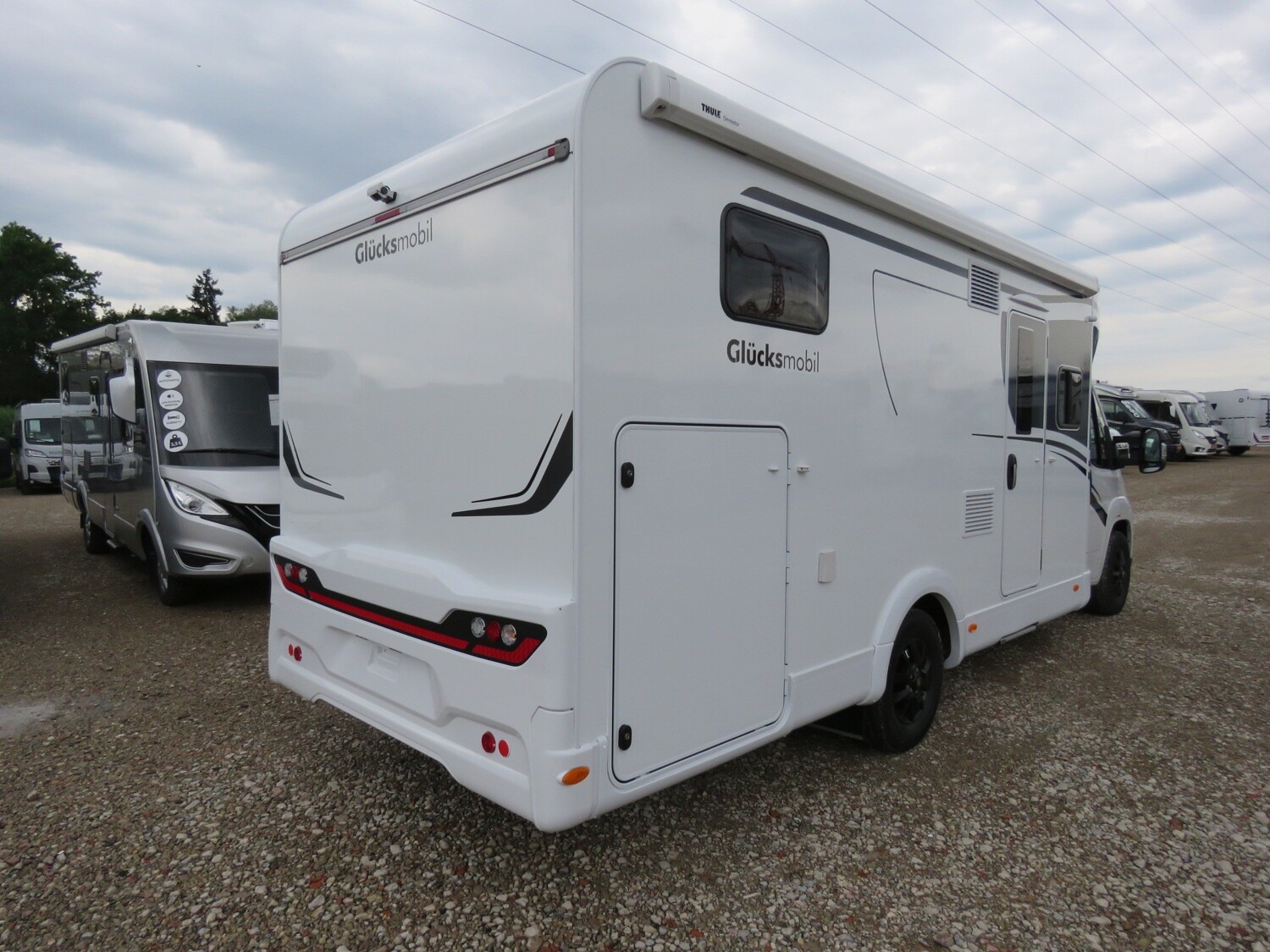- Serienausstattung Glücksmobil (Zenec Navi inkl. DAB+ und Truck Navigation, Rückfahrkamera (einfach, Rahmenfenster inkl. Küchenrückwand, Cassettenmarkise 4,0m manuell, 16 Zoll Alufelgen, Aufbautüre mit Fenster und Zentralverriegelung, Verdunkelungsjalousien im Fahrerhaus, Panorama-Dachhaube 70x50cm im Wohnraum, L-Sitzgruppe, Garagenklappe links, Indirekte Beleuchtung, Indirekte Gardinen-Beleuchtung o. Dimmung, CP Plus, Duschrost, Vorb. Solaranlage, Vorb. Dach-Klimaanlage, Ausstellfenster in der T-Haube, Küchenrückwand beleuchtet, Wohnwelt Heron, GT Abklebung, Bettenumbau EB zu DB, Glücksmobil Beklebung)