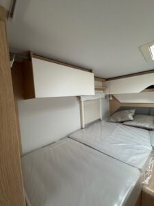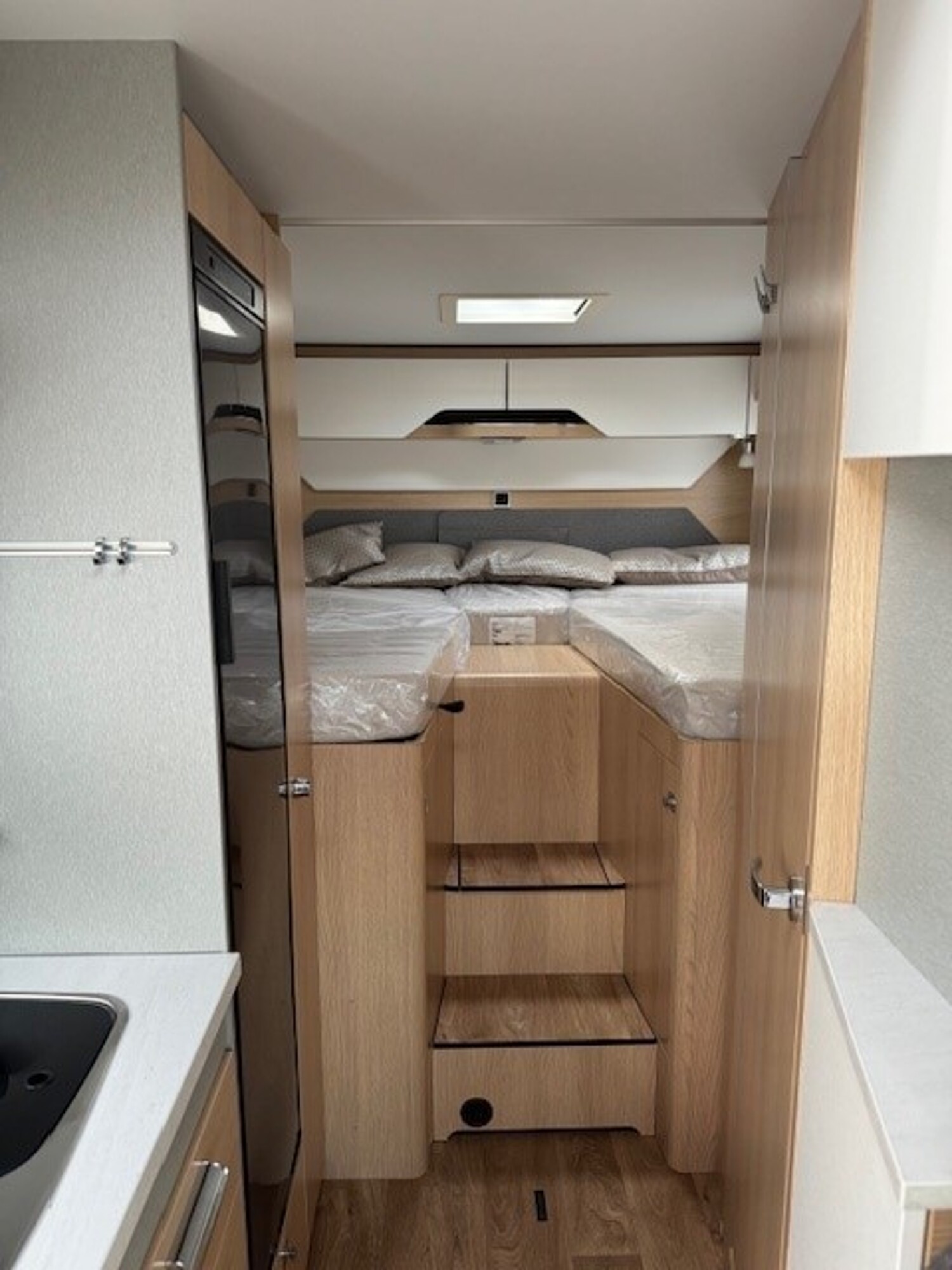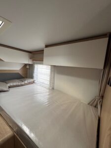 • Wohnkomfort-Paket (Einlegeboden mit Holzoberfläche, Spannbettlaken nach Maß für Heckbetten individuell an Matratzen angepasst, 4 Kissen mit Bezug, Ambient-Light-System: Mehr-Ebenen Lichtsystem mit dynamischer und individueller Steuerung der Beleuchtung (inkl. Lichttemperatur) sowie stimmungsvoller Sockelbeleuchtung, 4 x 230 V / 1 x 12 V / 1 x Doppel-USB Zusatzsteckdosen (inkl. Küchenwand-Verkleidung))
