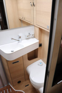 • Komfort Plus-Paket 5 (Fliegenschutzrollo an der Eingangstür, Panoramadach über Fahrerhaus, manuell ausstellbar, Fenster mit Verdunkelungsrollo und integriertem Mülleimer in Eingangstür, Faltverdunkelung für Fahrerhaus, Schublade und Einlegewanne als Stauraum in der Sitzgruppe)