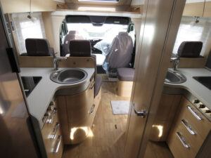 • White Line Ausstattung (Mercedes-Benz Sprinter 417 CDI / 170 PS Getriebe-Automatik Parkbremse elektronisch Bereifung Alu 225/75R16C Kühlergrill in Wagenfarbe & Chromzierstreifen Lenkrad in Leder Radio OEM MBUX 10,25? Klimaanlage halbautomatisch Kraftstofftank 92l Abstandsregel Tempomat Komfort-Aufbautür 600mm mit Fenster Frontscheibenverdunkelung Sitzgruppen Komfort L-Sitzgruppe Schubkasten Sitzgruppe Spannbetttuch Festbett Zusatzkissen Indirekte Beleuchtung Holzrost in der Dusche TV-Halter TV-Gerät 32? SAT-Anlage Oyster Vision 80cm Steckdosen-Paket Küchenwandverkleidung Fliegenschutztür Dachfenster Panorama Markise)