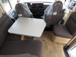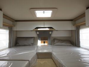 - Wohnkomfort-Paket (Einlegeboden mit Holzoberfläche, 4 x 230 V / 1 x 12 V / 1 x Doppel-USB Zusatzsteckdosen sowie Wohnkomfortleuchten, Spannbettlaken nach Maß für Heckbetten individuell an Matratzen angepasst, 4 Kissen mit Bezug)