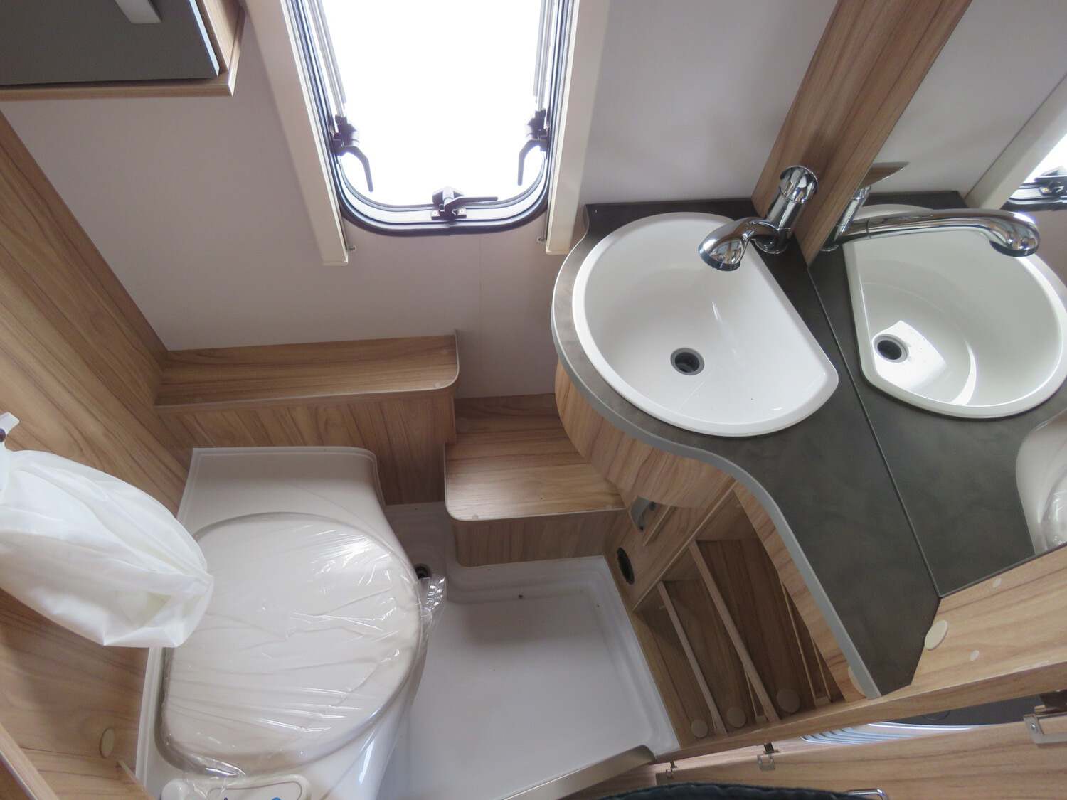 - Duschausrüstung mit Duschwanne, Brausekopf und Duschvorhang sowie zusätzlichem Aufstelldachzeltstoff für das Bad