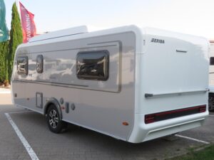 - Elegance-Paket II (Abdeckung für Zugdeichsel, Seitenwände in Glattblech, Farbe Crystal Silver, 15″ Leichtmetallfelgen, 5-Stern Schwarz poliert)