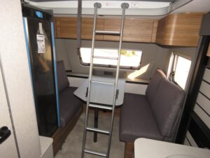 - Wohnkomfort-Paket (Komfortpolster für die Bugsitzgruppe, 2 Kissen mit Bezug, Ambiente-Beleuchtung XL mit indirekter Beleuchtung der Dachstauschränke und zwei zusätzlichen Multifunktionsakkulampen, Zusätzlicher Vergrößerungsspiegel mit Magnethalterung, Einlegeboden in Betonoptik)