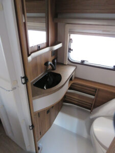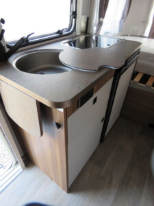 - Komfort-Paket (Fliegenschutz-Rolltür (gesamte Türhöhe), bedienfreundlich durch seitliche Führung, Komfort-Plissee-Rollos, Steckdosenpaket (2 x 230 V Steckdosen und 1 x USB-Doppelsteckdose), Abfalleimer in Eingangstür integriert, Spülenabdeckung mit Schneidebrett für Edelstahlspüle, Zusätzlicher Vergrößerungsspiegel mit Magnethalterung)