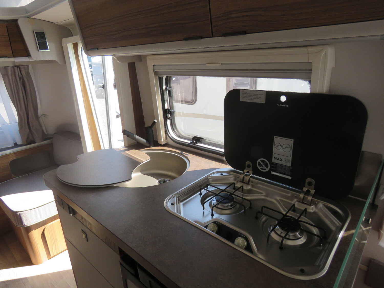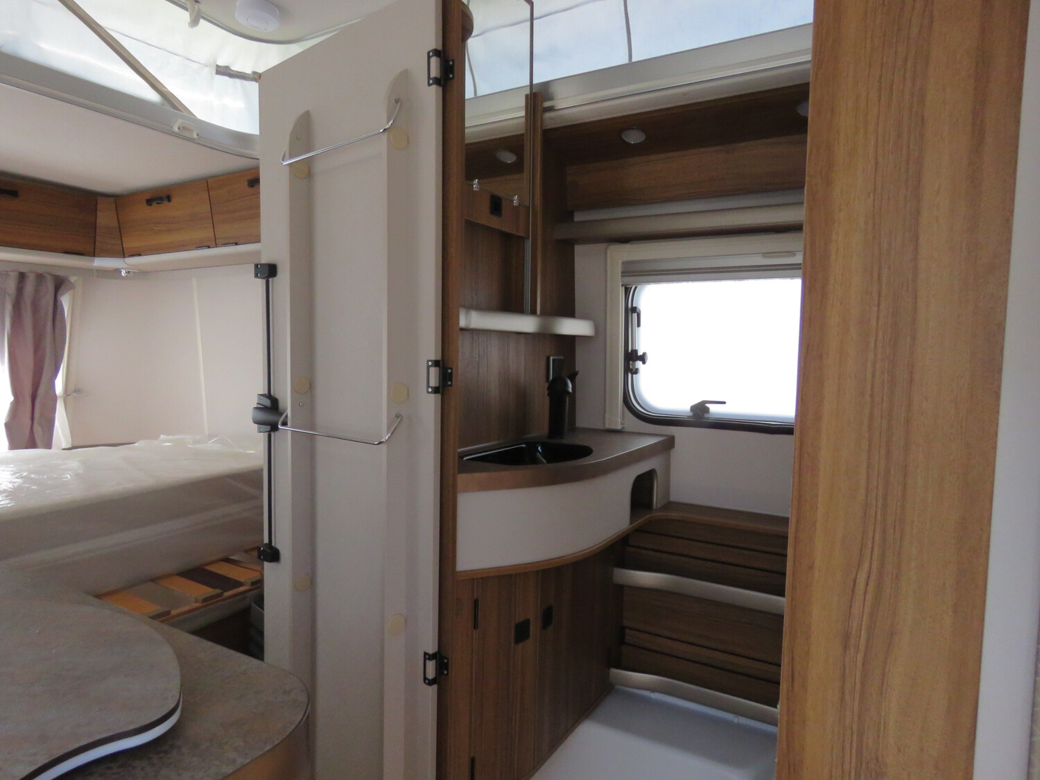 - Komfort Paket (Fliegenschutz-Rolltür (gesamte Türhöhe), bedienfreundlich durch seitliche Führung, Komfort-Plissee-Rollos, Steckdosenpaket (2 x 230 V Steckdosen und 1 x USB-Doppelsteckdose), Spülenabdeckung mit Schneidebrett, Abfalleimer in Eingangstür integriert, Zusätzlicher Vergrößerungsspiegel mit Magnethalterung)