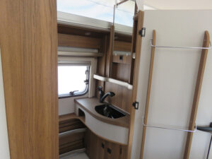 - Komfort Paket (Fliegenschutz-Rolltür (gesamte Türhöhe), bedienfreundlich durch seitliche Führung, Komfort-Plissee-Rollos, Steckdosenpaket (2 x 230 V Steckdosen und 1 x USB-Doppelsteckdose), Spülenabdeckung mit Schneidebrett, Abfalleimer in Eingangstür integriert, Zusätzlicher Vergrößerungsspiegel mit Magnethalterung)