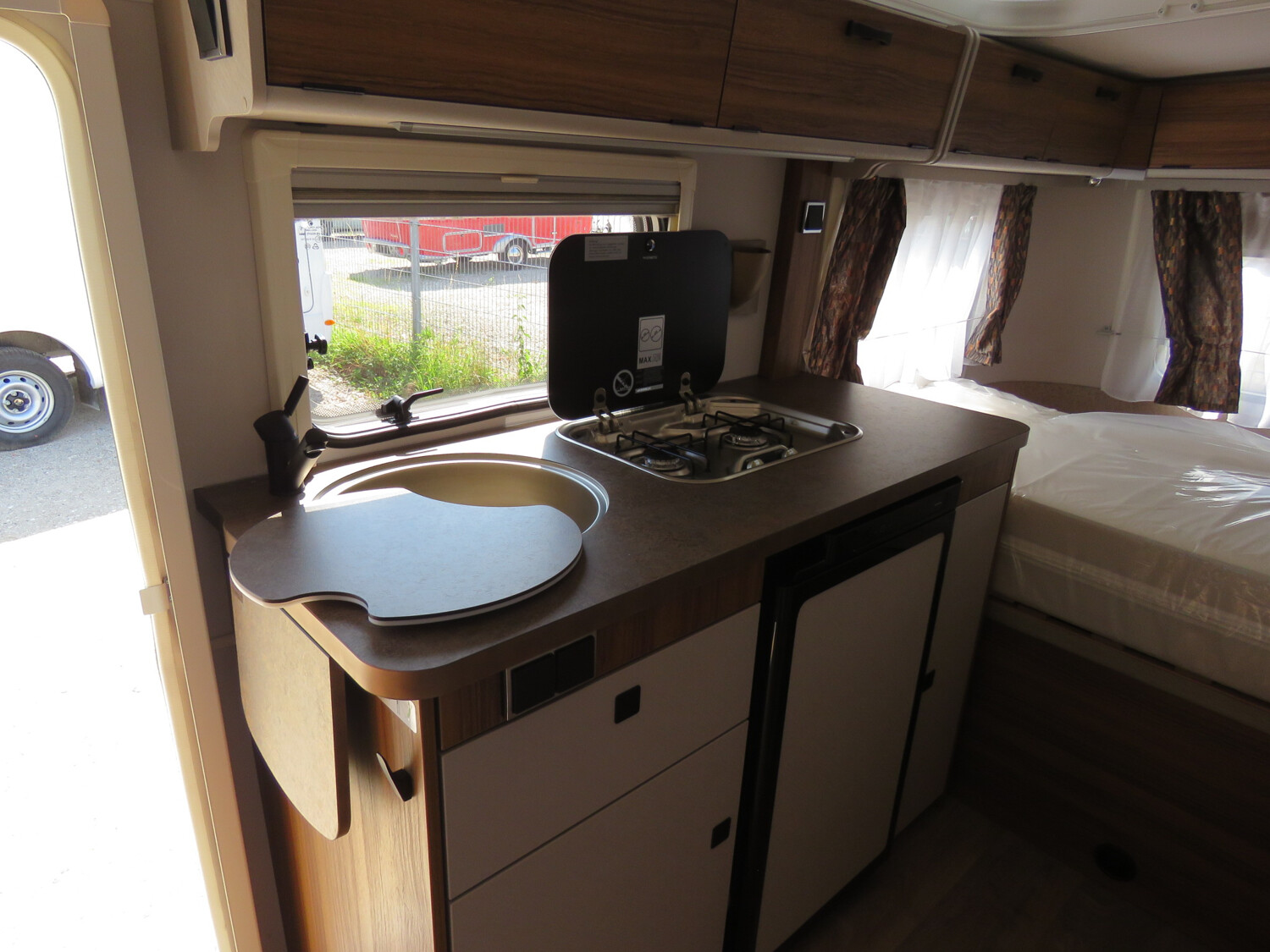 - Komfort Paket (Fliegenschutz-Rolltür (gesamte Türhöhe), bedienfreundlich durch seitliche Führung, Komfort-Plissee-Rollos, Steckdosenpaket (2 x 230 V Steckdosen und 1 x USB-Doppelsteckdose), Spülenabdeckung mit Schneidebrett, Abfalleimer in Eingangstür integriert, Zusätzlicher Vergrößerungsspiegel mit Magnethalterung)