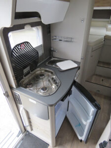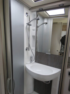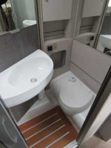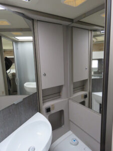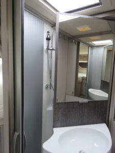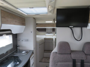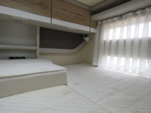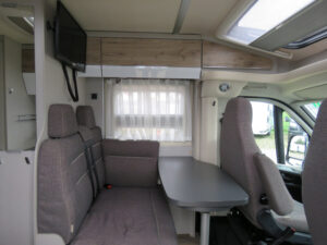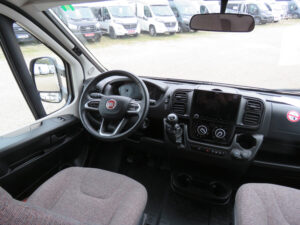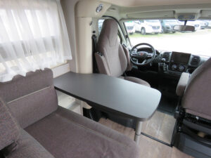 - Komfort Plus-Paket 2 (Fliegenschutzrollo an der Eingangstür, Panoramadach über Fahrerhaus, manuell ausstellbar, Fenster mit Verdunkelungsrollo und integriertem Mülleimer in Eingangstür, Faltverdunkelung für Fahrerhaus)