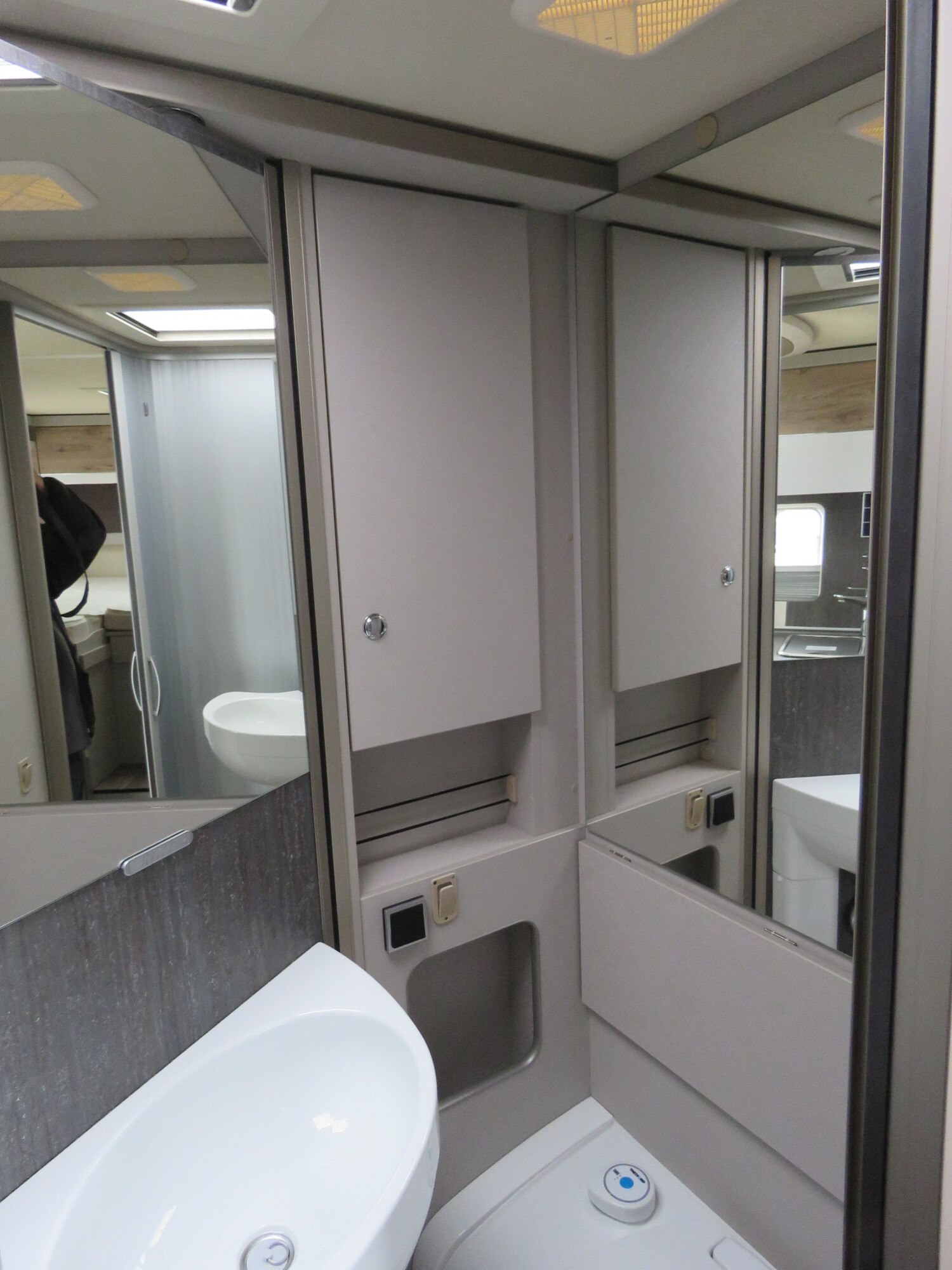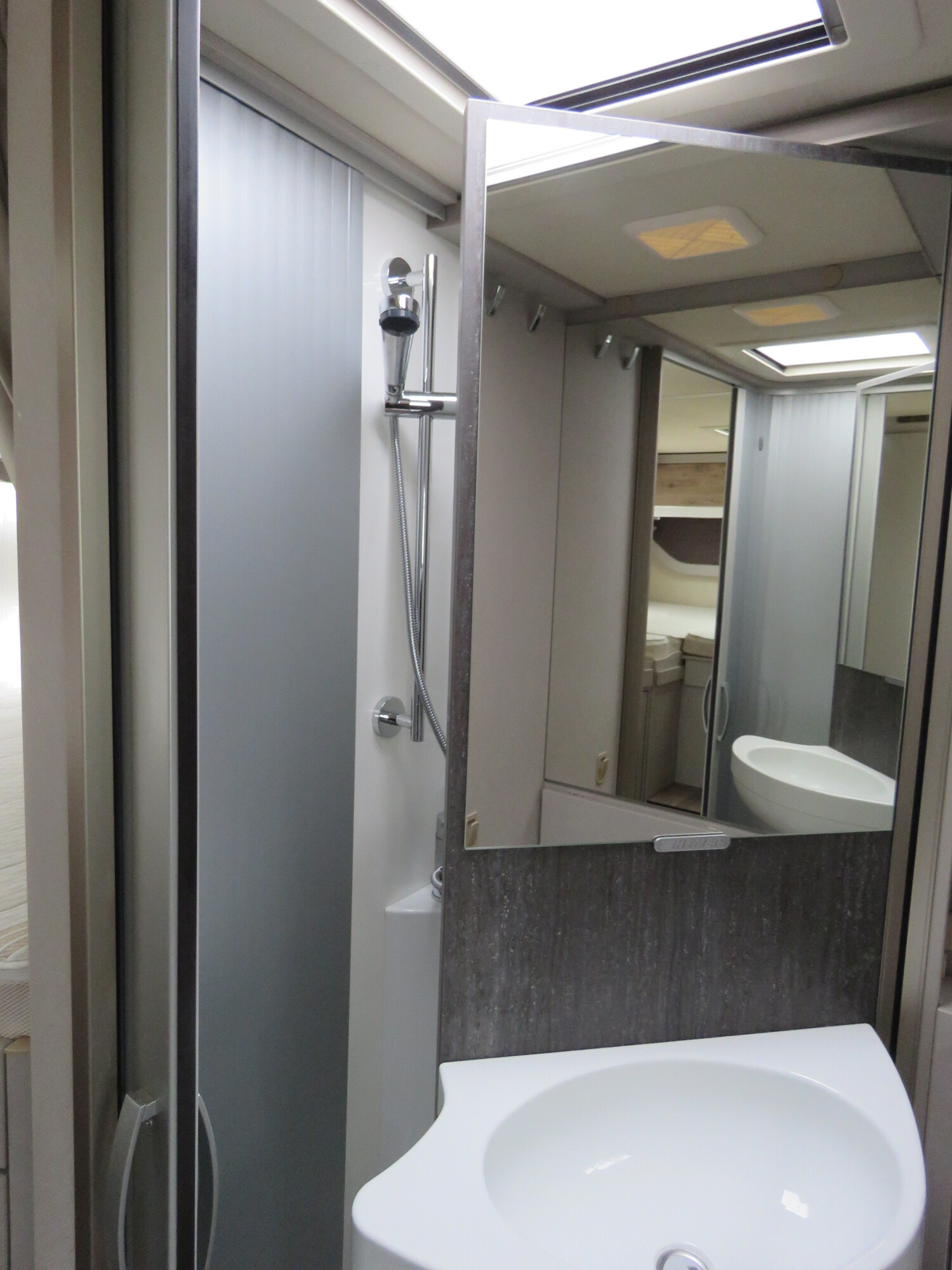 - Komfort Plus-Paket 2 (Fliegenschutzrollo an der Eingangstür, Panoramadach über Fahrerhaus, manuell ausstellbar, Fenster mit Verdunkelungsrollo und integriertem Mülleimer in Eingangstür, Faltverdunkelung für Fahrerhaus)