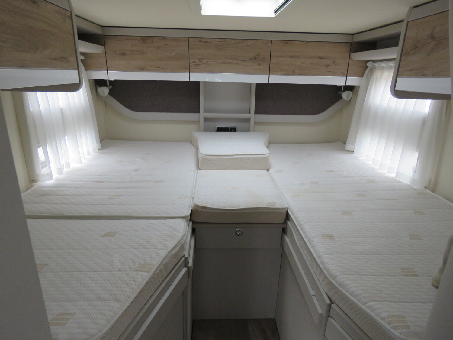 - Zusatzpolster zwischen den Längseinzelbetten mit Aufstiegsleiter