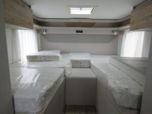 - Serienausstattung (Außenspiegel elektrisch verstell- und beheizbar, Kühlergrill-Rahmen Schwarz Glanz, Scheinwerfer mit schwarzem Rahmen, Schmutzfänger an Hinterachse, Spoiler in Wagenfarbe lackiert, LED-Tagfahrlicht, 16″ Leichtmetallräder (für Light-Chassis), Hinterachsstabilisator, Lenkrad und Schaltknauf in Leder, manuelle Klimaanlage mit Pollenfilter, ABS (Anti-Blockiersystem) / EBD (Elektronische Bremskraftverteilung), ESP inkl. ASR, Traction Plus und Hill Holder, Post-Kollision-Bremskontrolle, Seitenwindassistent, Start-Stop-System inkl. intelligenter Lichtmaschine, Tempomat Fiat Cruise Control, SKID-PLATE Schwarz Glanz, Aufbau: 60 cm Maxi – Komfort-Eingangstür inkl. Fenster mit Verdunkelung und Mülleimer, Markise mit Adapter, Gehäuse weiß oder silber, 400 x 250 cm, Garagenklappe in Fahrtrichtung links, 75 x 85 cm, Garagentraglast bis 350 kg (optional 450kg), GFK-Leichtbauboden mit XPS-Isolierung (Boden 41mm), große Garagentür in Fahrtrichtung rechts, Panoramadach über Fahrerhaus, manuell ausstellbar, HYMER Panorama-Kurbeldachlüfter 80 x 50 cm, doppeltverglast mit LED-Beleuchtung im Wohnraum, Faltverdunkelung für Fahrerhaus, Komfort L-Sitzgruppe mit Loungepolstern, längs-/quer verschiebbarem Tisch und 2 integrierten 3-Punkt-Gurten, multifunktionale ergonomische Möbelelemente, Bettenbau für Komfort L-Sitzgruppe inkl. Zusatzpolster und absenkbarem Tisch unter Einbeziehung des Fahrersitzes, Kaltschaummatratze inkl. hochwertige Matratzenunterlage (Gewirke) zur Belüftung im Heck, Zusatzpolster zwischen den Längseinzelbetten inkl. integrierter Komfortaufstieg, Ambiente-Beleuchtung, komplette LED-Innenbeleuchtung, LED-Thekenbeleuchtung, LED-Vorzeltleuchte, Küche: Küchen-Schubladen mit Soft-Close-Funktion und Besteckeinsatz, extra breite, 142 l Smart-Tower Kühlschrank, Badezimmer: Einlegeboden mit Holzoberfläche, Milchglas-Dachlüfter 40 x 40 cm mit Verdunkelungsrollo und Mückenschutz im Bad, Installation & Technik: 6 kW Gas-Warmluftheizung mit 10 l Warmwasserboiler, LCD-Bedienteil für die Heizung, automatische Gasflaschenumschaltanlage mit Crash Sensor und EisEx, Gasfilter für automatische Gasflaschenumschaltanlage, Gaskasten mit Zugang durch Außentüre/-klappe, 4 x 230 V / 1 x 12 V / 1 x Doppel-USB Zusatzsteckdosen (inkl. Küchenwand-Verkleidung), verstärkte Batterie 12 V 95 Ah AGM, 120 l Frischwassertank isoliert und beheizt (20 l in Fahrstellung), 90 l Abwassertank isoliert und beheizt, Multimedia: Radio-/TV-Vorbereitung inkl. 12 V und 230 V Steckdose, 2 Lautsprecher Fahrerhaus, 2 Lautsprecher im Alkoven, Radio- und DVB-T2 Antenne, Rückfahrkamera, 32″ Flachbildschirmhalter, 32″ Smart-LED-TV mit integrierten Lautsprechern, Fernbedienung, DVD-Laufwerk, (DVB-T/C, DVB-S2) inkl. Receiver, Satellitenantenne digital mit 65 cm Spiegel, Textilien & Dekore: Möbeldekor Sauvignon Oak (Tip Printed), Stoffkombination Korfu.)