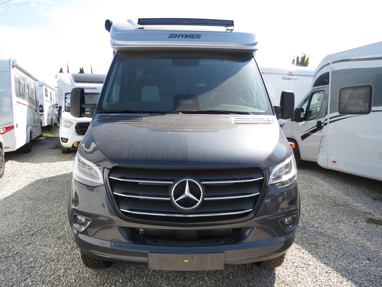 - CrossOver Gesamtpaket ML-T, Außenfarbe Fahrerhaus Tenoritgrau (Metallic), Markise (schwarz) inkl. dimmbarer LED-Beleuchtung 400 x 250 cm, Aktiver Abstands-Assistent DISTRONIC PLUS inkl. Lenkrad-Multifunktionstasten, 4 Kissen mit Bezug, Radlaufverbreiterung vorne, Außendusche in der Garage, Werkzeug-Set (Klappspaten, Axt) im Heckstauraum, Komfort L-Sitzgruppe mit Loungepolstern längs-/quer verschiebbarem Tisch und 2 integrierten 3-Punkt-Gurten, Bettenbau für Komfort L-Sitzgruppe inkl. Zusatzpolster und absenkbarem Tisch unter Einbeziehung des Fahrersitzes, Schlafkomfortsystem mit Tellerfederrost und Mehrzonen-Kaltschaummatratze(n) für Heckbett(en), Spannbettlaken nach Maß für Heckbetten individuell an Matratzen angepasst, Zusatzpolster zwischen den Längseinzelbetten inkl. integrierter Komfortaufstieg, Lichtpaket (Multifunktionale Pendelleuchte sowie eine Ambiente-Leseleuchte für die Multifunktionswände), Komfort-Eingangstür mit Fenster Verdunkelungsrollo integriertem Mülleimer und 2-fach Verriegelung, Zweite Toilettenkassette inkl. Halterung in Außenstauraum, 6 kW Diesel-Warmluftheizung mit 10l Warmwasserboiler Lutdrucksensor (Höhenkit) und 1.800 Watt Elektroheizstab, HYMER-Smart-Battery-System 2.0 – Zusätzlich 3 x 80 Ah LFP (Gesamtleistung 320 Ah), Solaranlage 2 x 95 Watt mit Solarladeregler (MPPT) und Anzeige, Wechselrichter 12 V auf 230 V 1800 Watt mit Netzvorrangschaltung, 3 x 230 V / 1 x 12 V Zusatzsteckdosen, Wasserfilter für Frischwassersystem, Riffelblechboden und Filzverkleidung in Heckgarage, Designbeklebung Crossover, Nebelscheinwerfer mit Abbiegelicht, Mercedes-Benz Sprinter 4,1 t – 419 CDI – 140 KW/190 PS – Euro VI-E, Außenfarbe Aufbau Crystal-Silver-Metallic, Allradantrieb (permanent) mit Torque-on-Demand, Automatikgetriebe 9G-TRONIC inkl. Hold-Funktion (x19 CDI), Kühlergrill Chrom, LED-High-Performance-Scheinwerfer, Stoßfänger Anbauteile und Kühlergrillrahmen in Wagenfarbe lackiert, Motor-/Unterfahrschutz, Windschutzscheibe beheizbar, Ladepaket Instrumententafel mit 2 x USB-C Stecker 5V / 1x 12V-Steckdose, Lederlenkrad (bei Automatikgetriebe), Navigation & Smartphone-Integration für MBUX-System, Vollautomatische Klimaanlage THERMOTRONIC, Fernlicht-Assistent, Verkehrszeichen-Assistent, Dachreling mit Heckleiter ohne geriffelter Aluminium-Dachplatte, 44″ LED-Lightbar über dem Fahrerhaus, Ablage für Smartphones inkl. wireless charging Funktion und Ladestandsanzeige, Ambiente-Beleuchtung