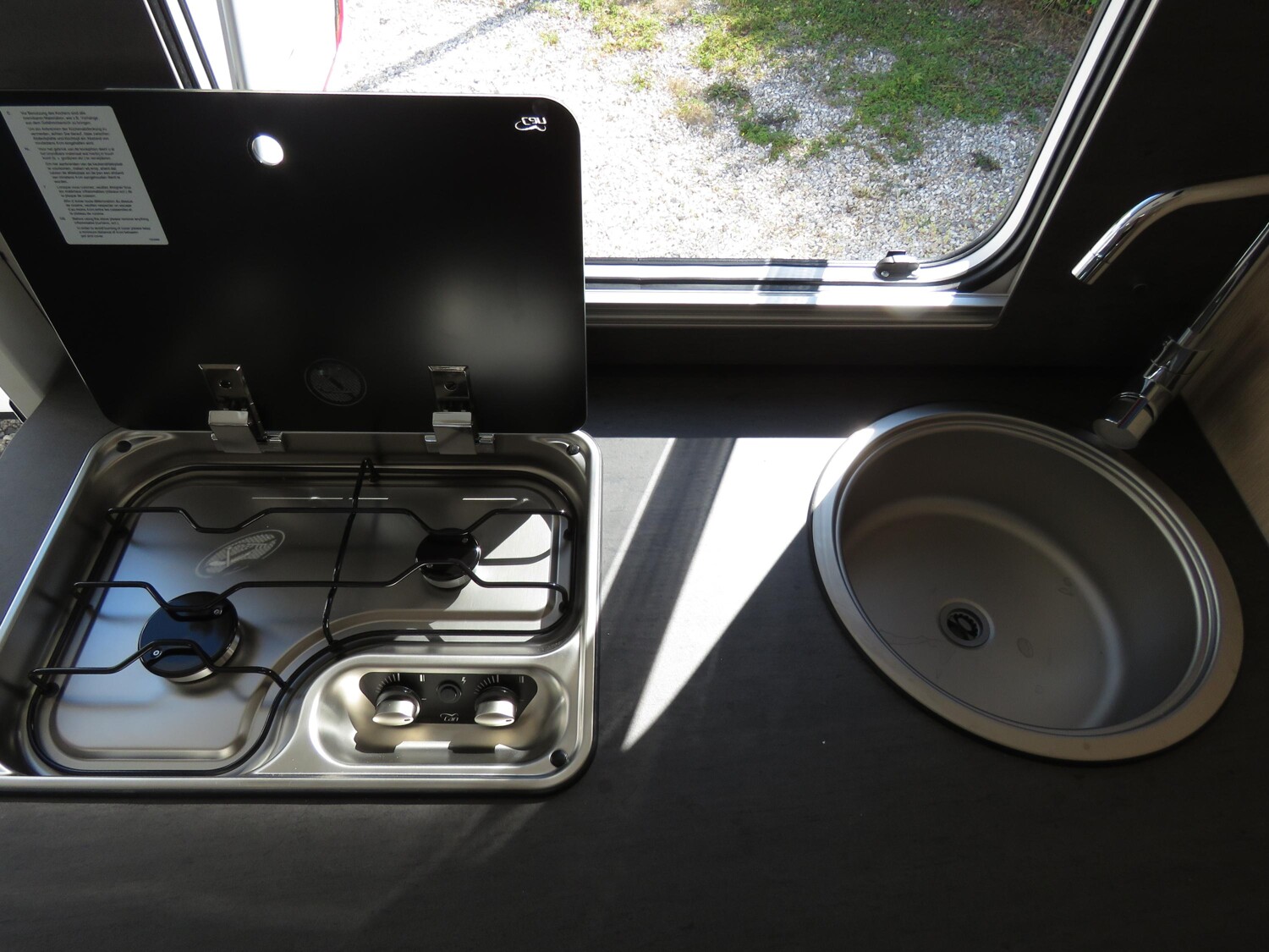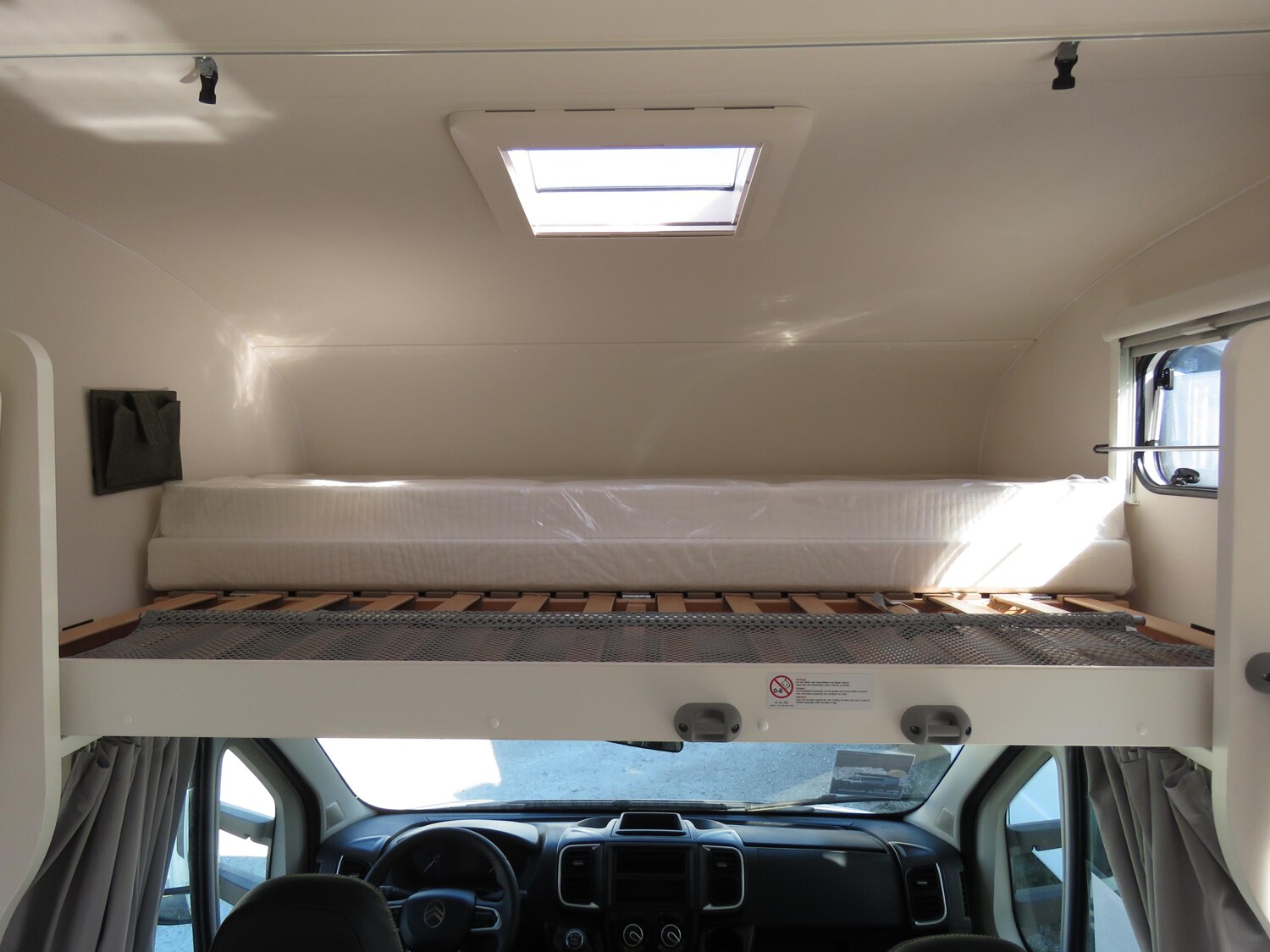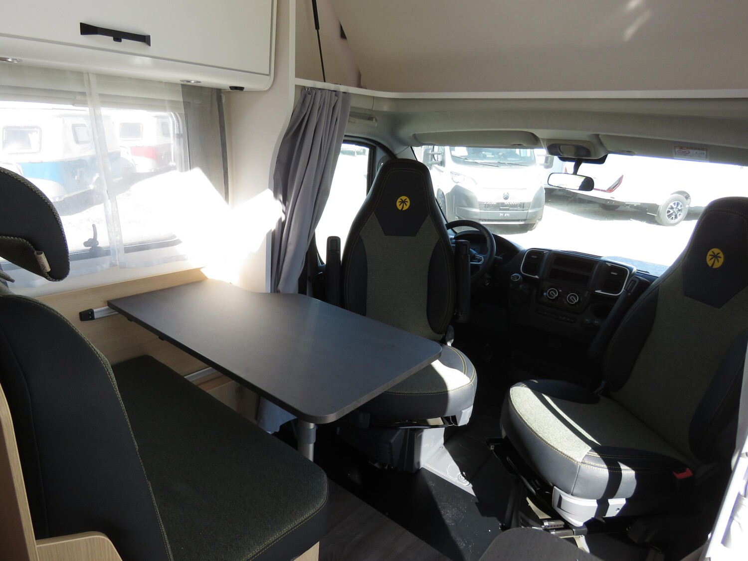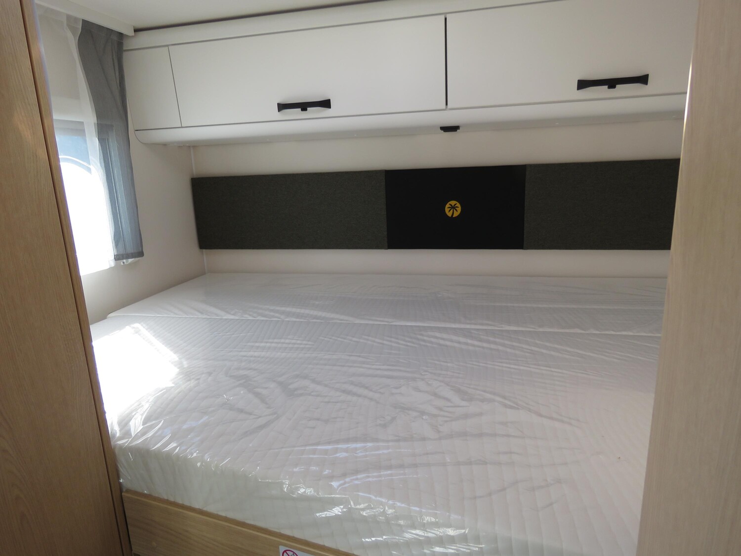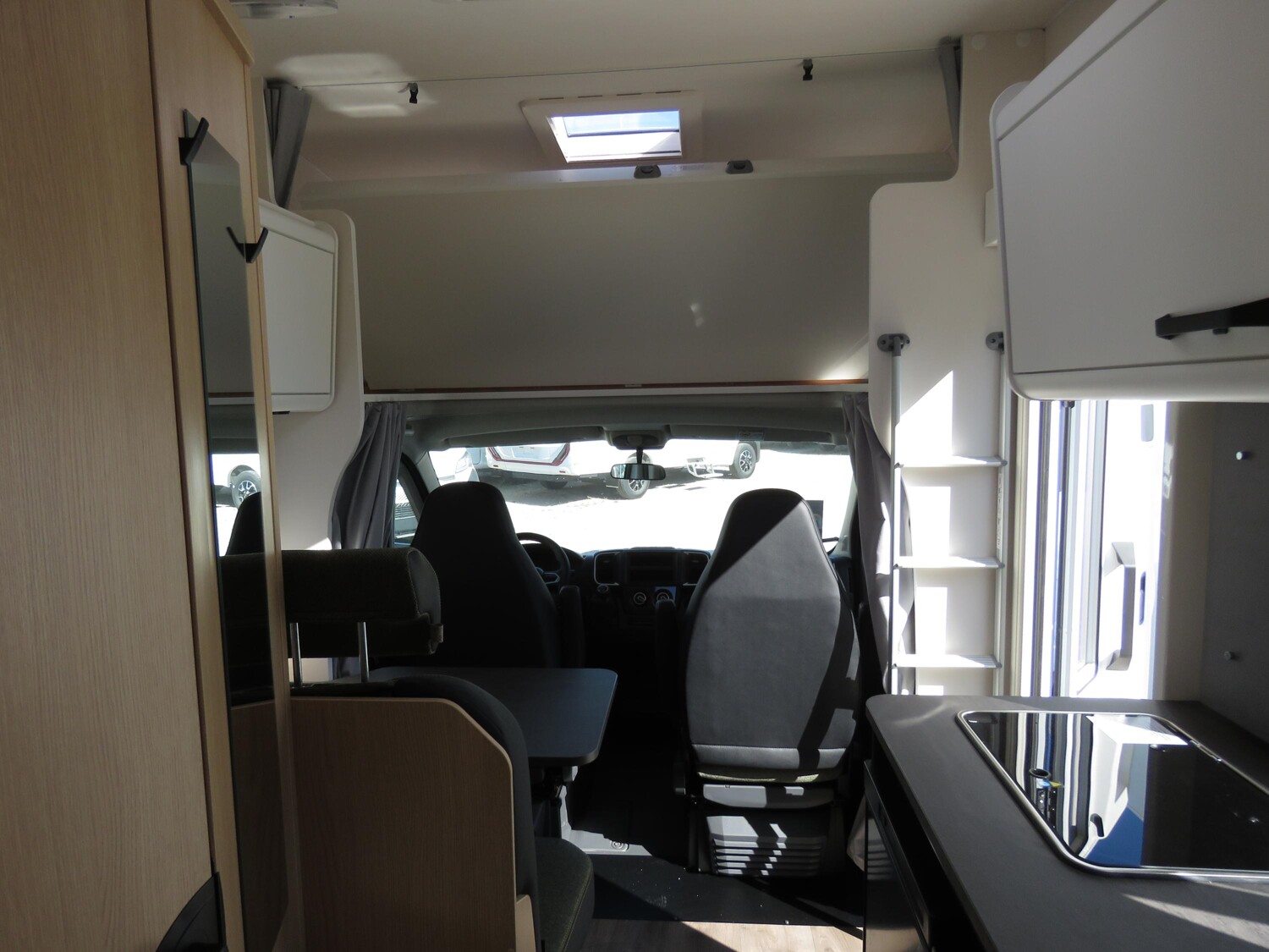 - Basisfahrzeug ? Fiat Ducato 3,5 t (2.2 Multijet, 140 PS): 6 Gang Schaltgetriebe, Frontantrieb, ABS, EBD, ESP inkl. ASR & Hill Holder, Start & Stop Funktion mit Ladebooster, Tempomat, Multifunktionslenkrad, Traction+, manuelle Fahrerhaus Klimaanlage, Fahrer & Beifahrerairbag, 3 Punkt Gurte, drehbare Captain Chair Sitze (Lordosenstütze, Höhen /Neigungsverstellung), elektrische Fensterheber & Zentralverriegelung, elektrisch beheizte Außenspiegel, 60 l Dieseltank, Pannen Set Fix & Go, M+S Campingreifen (Schneeflocke) auf Breitspurfahrwerk, Tagfahrlicht, Scheinwerfer mit schwarzem Rahmen, DAB Antenne im Spiegel. Bad: Variobad mit Duschraumverkleidung, Kassettentoilette (elektr. Pumpe, drehbarer Sitz), Dachhaube mit Insektenschutz, große Spiegelflächen, Kleiderstange in der Nasszelle. Bordtechnik: Bord Control Panel (Füllstände, Batteriekapazitäten), AGM Aufbaubatterie 95 Ah mit 18 A Ladegerät, CEE Außenanschluss 230 V, FI Schutzschalter, 3× USB A & 1× USB C Steckdosen (grundrissabhängig), LED Außen & Wohnraumleuchten, Vorbereitung Rückfahrkamera. Aufbau außen: Dach & Heck in GFK, Seitenwände aus Glattblech Aluminium, 7 Jahre Dichtigkeitsgarantie, doppeltverglaste Ausstellfenster mit Kombirollos, elektrische Trittstufe, Voll LED Heckleuchtenträger, Außenstauraumklappe, Heckgarage bis 150?,,,,kg Zuladung, Verzurrösen & Beleuchtung. Aufbau innen / Wohnraum: Alkovenbett 210 × 160 cm (72 cm Kopffreiheit, klappbar) mit Sicherheitsnetz, hochwertige Matratzen & Holzlattenroste in allen Festbetten, Isofix Verankerungen (2 Plätze), großzügige Stauräume, hinterlüftete Schränke, Spiegel mit Indirektbeleuchtung, Tischplatten Verlängerung, Möbeldekor Cozy Cottage, Black Flow, Dyna White, Active Grey, Fußboden ?Mountain Lodge?. Küche: Zwei Flammkocher mit 12?,,,,V Zündung & Glasabdeckung, Rundspülbecken aus Edelstahl, großzügige Arbeitsfläche, 78 l Kühlschrank (11 l Gefrierfach), 122 l Frischwasser (inkl. Boiler) / 92 l Abwasser, Servo Soft Schubkästen, Flex Schienensystem mit 2 Haken, LED Bandbeleuchtung, integrierter Abfalleimer. Heizung / Gas: Truma Combi 6 Gasheizung, Gasflaschenkasten für 2 × 11 kg, zentral angeordnete, gut zugängliche Gasabsperrhähne.