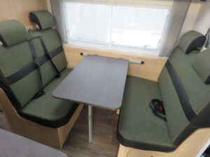 • Serienausstattung: Wohnwelt Greentrail, Fahrer-/Beifahrersitz drehbar,Isofix für 2 Plätze, Möbeldekor Black Flow, Dyna White und Active Grey,Fussboden Mountain Lodge, Ausstellfenster doppeltverglast mit Fliegenschutz und Verdunklungsrollo (Sitzgruppe, Küche),Leistungsstarke, wartungsfreie AGM-Aufbaubatterie (95 Ah) inkl. Ladegerät (18 A), Combi 6 Gasheizung mit integriertem 10 l Boiler, 2-Flamm Gaskocher mit elektrischer Zündung und Glasabdeckung, Kühlschrank 98 l mit Gefrierfach 14 l, Wassertank inkl. Boiler 122 l, Abwassertank 92 l, Kassetten-Toilette