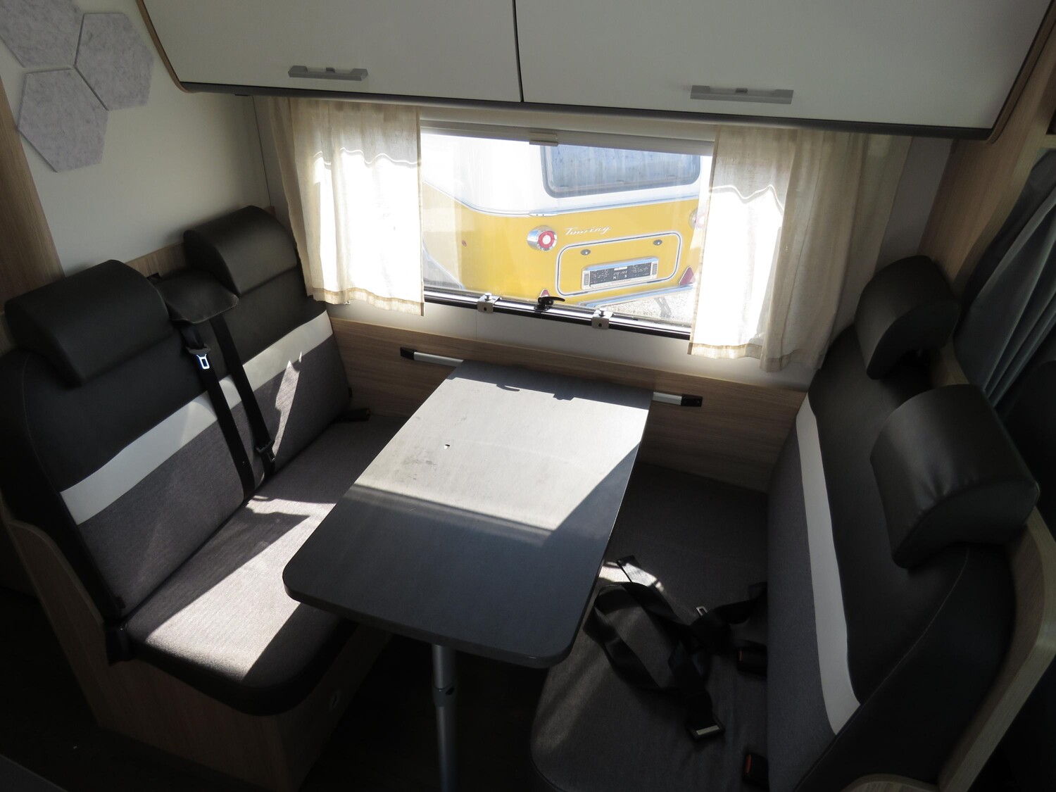 • FIAT 2,3 l Mjet – 118 kW (160 PS) – EURO 6 inkl. Start & Stop Funktion und Booster, Traction+, Fiat 16 Stahlfelgen für Light-Chassis inkl. Radzierblenden, Dieseltank 90l, 2. Außenstauraumklappe, Sicherheitspaket: 2 Kopfstützen und 2 Beckengurte mittl. Sitzbank entgeg. Fahrtrichtung, Großer Kühlschrank 167 l mit separatem Frosterfach 29 l, Kabelvorbereitung für Rückfahrkamera, Fahrradträger 3 fach, 4. Schiene Fahrradträger, Markise – 4m, Chassis – Paket T + A (Klimaanlage Fahrerhaus manuell, Beifahrer-Airbag, Außenspiegel elektrisch und beheizt, Tempomat, Radiovorbereitung mit Lautsprechern, Antenne, Beifahrersitz höhenverstellbar), Basic – Paket T + A (Panoramadachhaube über Küche, Klarglasdachhaube 40×40, Duschraumverkleidung, Spiegel mit indirekter Beleuchtung und Garderobenhaken, Captain Chair mit Bezügen, zusätzl. Steckdose im Dachschrank über dem Küchenblock, Steckdose in der Garage), Multimedia 2DIN mit Rückfahrkamera, Markise, Fahrradträger, Tempomat