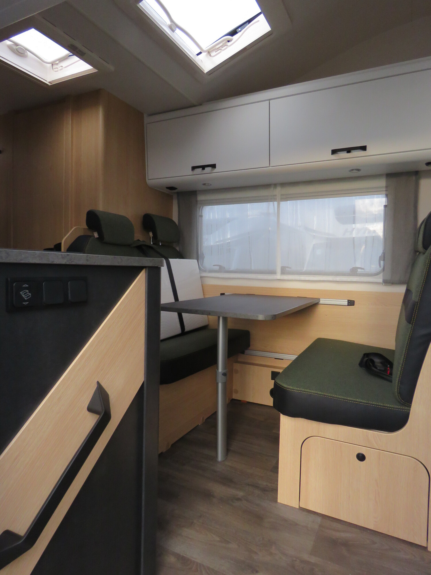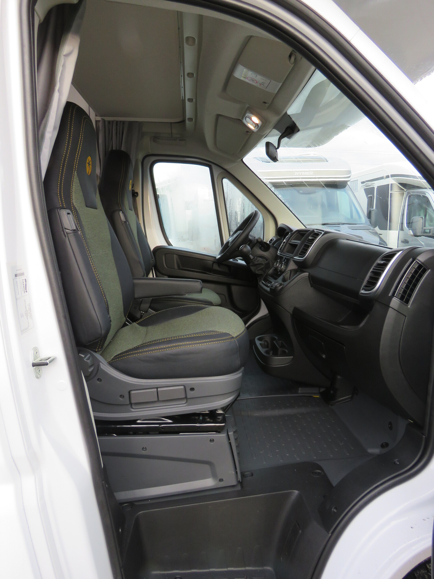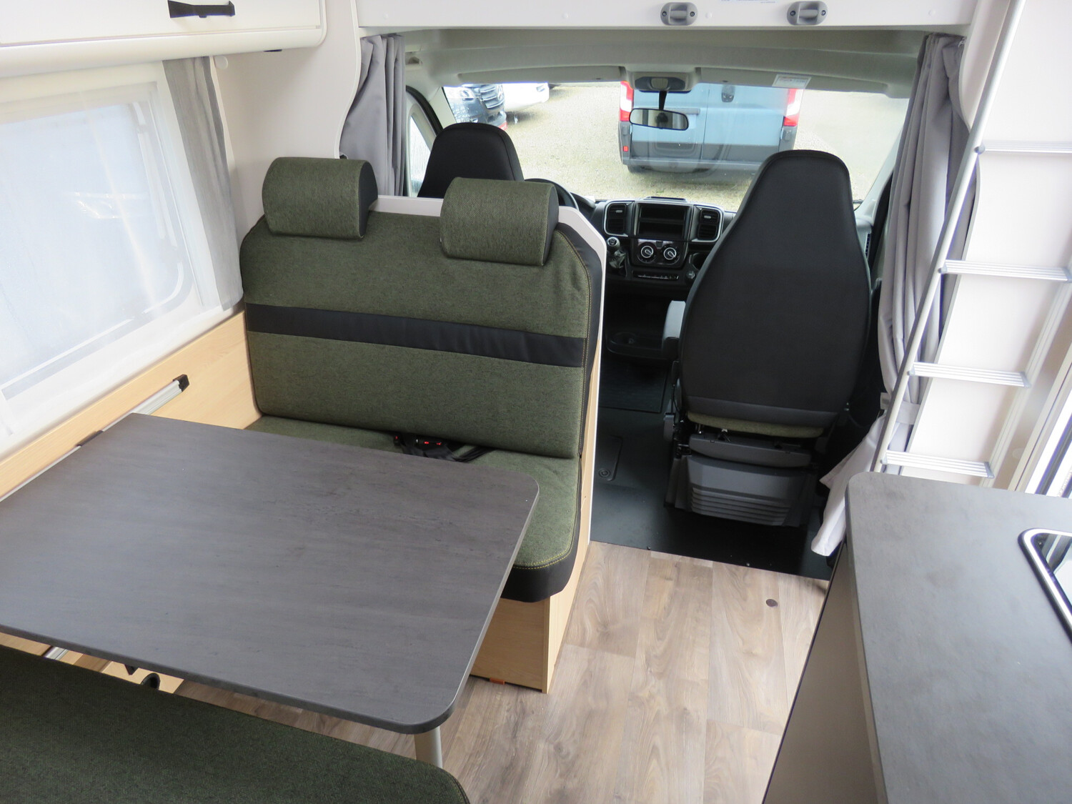 • Serienausstattung: Wohnwelt Greentrail, Fahrer-/Beifahrersitz drehbar,Isofix für 2 Plätze, Möbeldekor Black Flow, Dyna White und Active Grey,Fussboden Mountain Lodge, Ausstellfenster doppeltverglast mit Fliegenschutz und Verdunklungsrollo (Sitzgruppe, Küche),Leistungsstarke, wartungsfreie AGM-Aufbaubatterie (95 Ah) inkl. Ladegerät (18 A), Combi 6 Gasheizung mit integriertem 10 l Boiler, 2-Flamm Gaskocher mit elektrischer Zündung und Glasabdeckung, Kühlschrank 98 l mit Gefrierfach 14 l, Wassertank inkl. Boiler 122 l, Abwassertank 92 l, Kassetten-Toilette