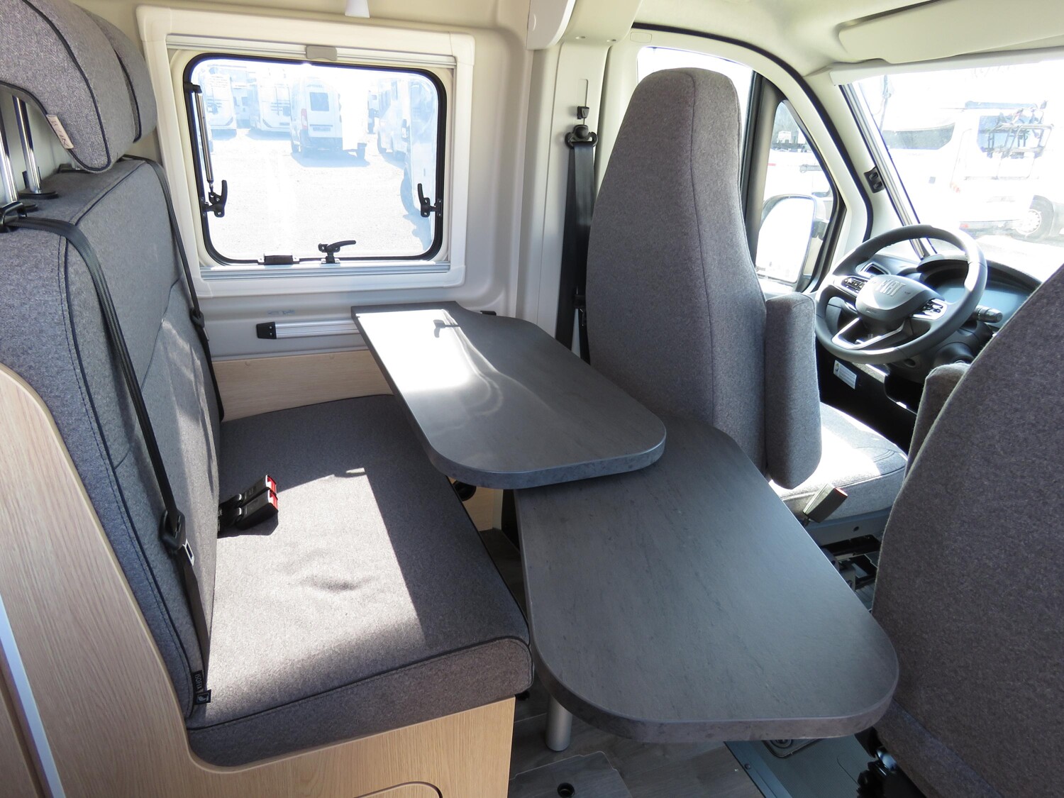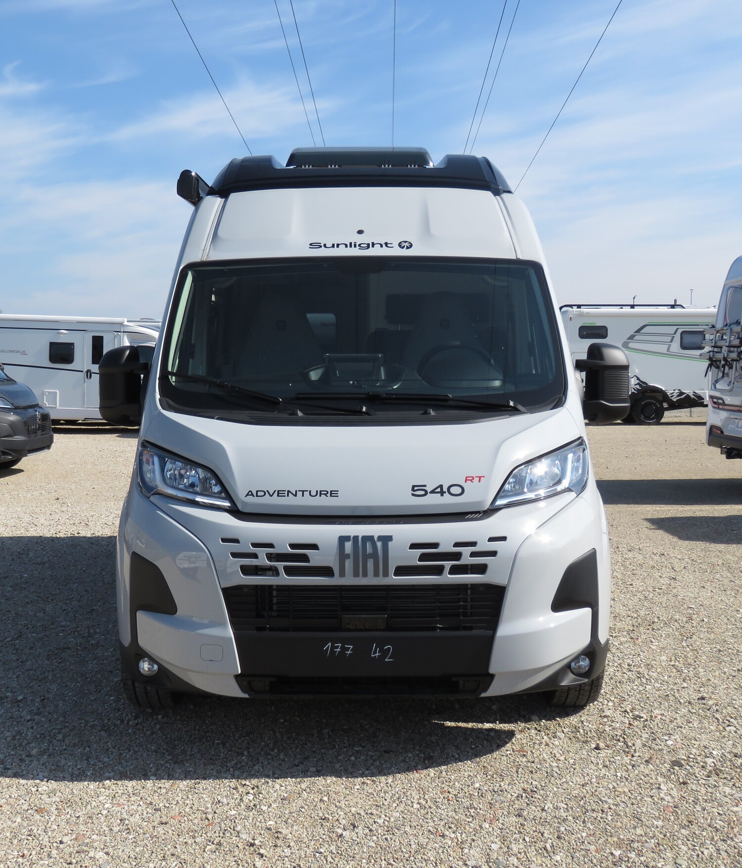 • Adventure Ausstattung 540 (Fiat Ducato 3.500 kg | 2.2 | 103 kW | 140 PS Euro 6 | 6-Gang-Schaltgetriebe, Fiat Weiß, Adventure Beklebung, Wohnwelt Adventure, Markise (schwarz), Panoramadachhaube 70 x 50 cm, Duschausstattung, Fenster im Bad, Kleiderstange in der Nasszelle, Breite Einstiegsstufe, Drehplatte für Tischerweiterung an der Sitzgruppe, Stoßfänger lackiert, Skid Plate Schwarz, Nebelscheinwerfer, Lenkrad & Schaltknauf in Lederausführung, Luftauslässe mit Applikationen Silber (Techno-Trim), 16″ Alufelgen Bi-Color)