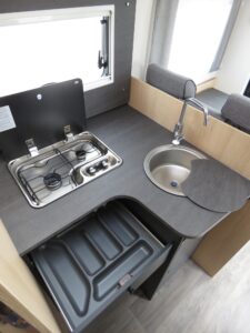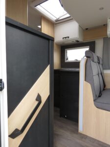 - Adventure Ausstattung 680 (Ford Transit 3.500 kg | 2.0 | 96 kW | 130 PS | Euro 6 | 6-Gang-Schaltgetriebe, Black Metallic, 16″ Alufelgen schwarz, Seitenwand Silber Glattblech, Adventure Beklebung, Wohnwelt Adventure, Design Applikation Heck, Fenster in Fronthaube, Rahmenfenster, 2. Außenstauraumklappe (Größe modellabhängig), Großer Kühlschrank 156 l mit separatem Frosterfach 29 l, Bettenumbau Einzelbett zu Doppelbett, Paket One Black (Markise, Fahrradträger 3-fach), Bridge Light, Komfort Eingangstür mit Fenster, Fliegengittertür (einteilig), Panoramadachhaube 70 x 50 cm, Klarglasdachhaube 40 x 40 cm, Klimaanlage inkl. Staub- und Pollenfilter, Stoßfänger lackiert, Nebelscheinwerfer, Scheinwerfer mit statischem Abbiegelicht)