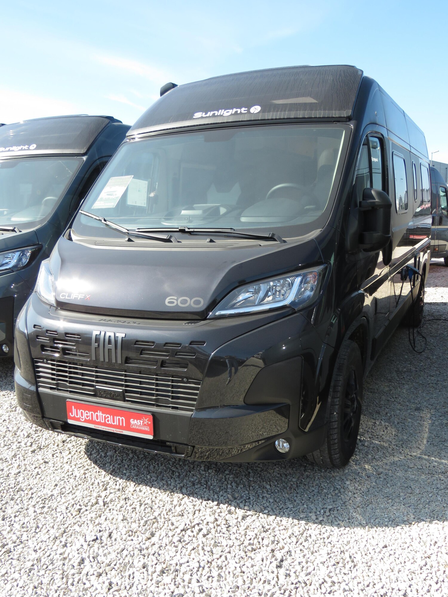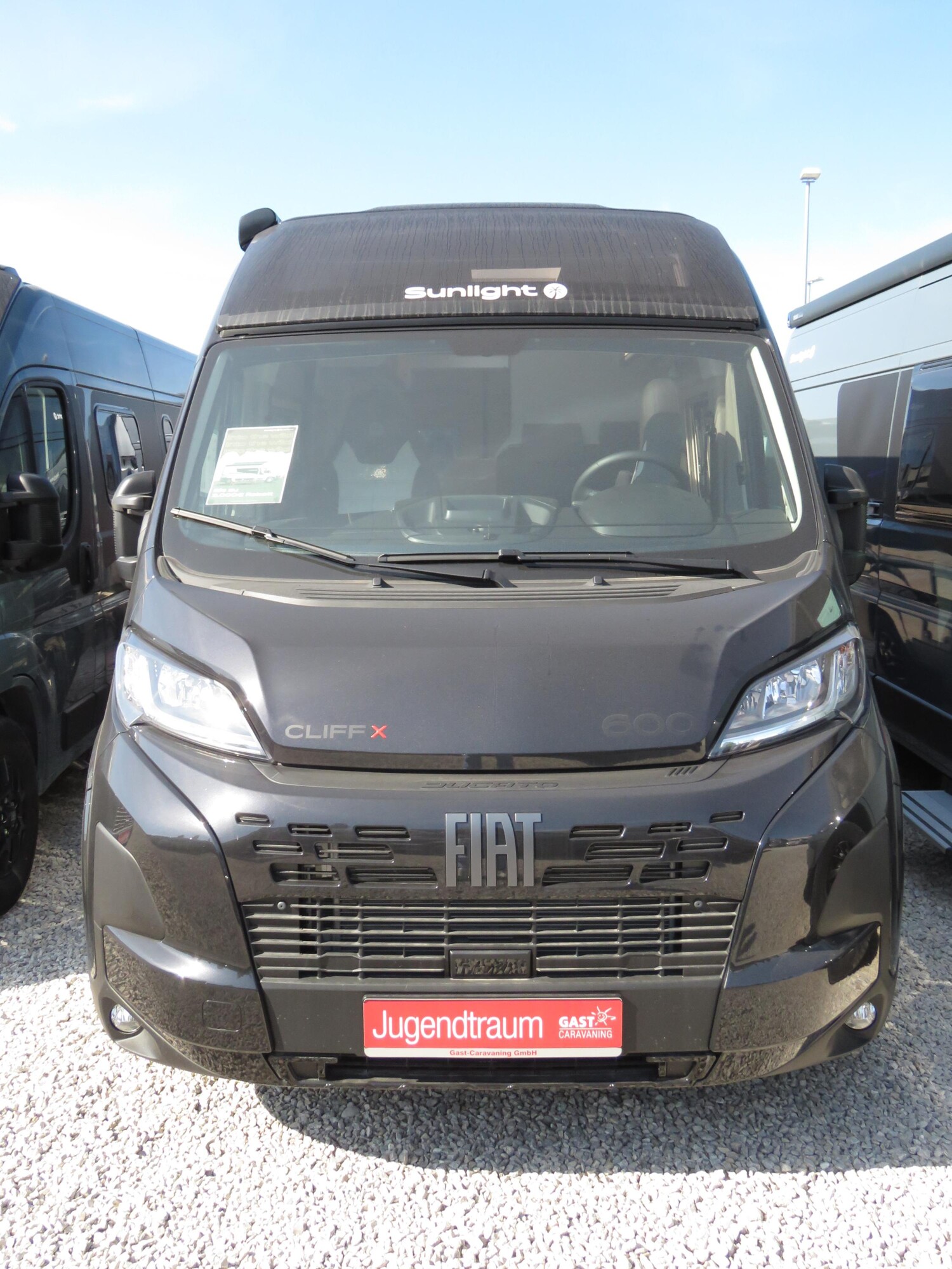 - Cliff X Ausstattung 600 (Fiat Ducato 3.500 kg | 2.2 Multijet | 103 kW | 140 PS Euro 6 | 6-Gang-Schaltgetriebe, Fiat Weiß, Adventure Beklebung, Wohnwelt Adventure, LED Beleuchtung Dachschrank, Dachstauschrank Heck umlaufend, Skyview, Rahmenfenster, Variobad, Markise (schwarz), Panoramadachhaube 70 x 50 cm, Duschausstattung, Fenster im Bad, Kleiderstange in der Nasszelle, Breite Einstiegsstufe, Drehplatte für Tischerweiterung an der Sitzgruppe, Stoßfänger lackiert, Skid Plate Schwarz, Nebelscheinwerfer, Lenkrad & Schaltknauf in Lederausführung, Luftauslässe mit Applikationen Silber (Techno-Trim), 16″ Alufelgen Bi-Color)