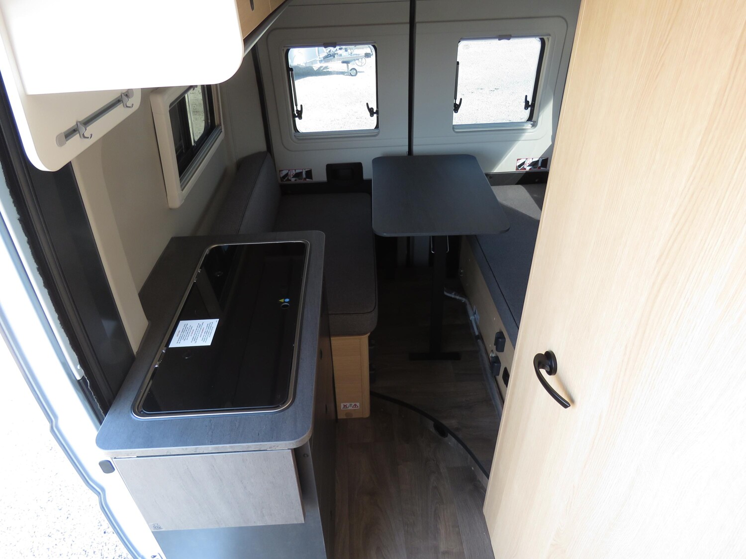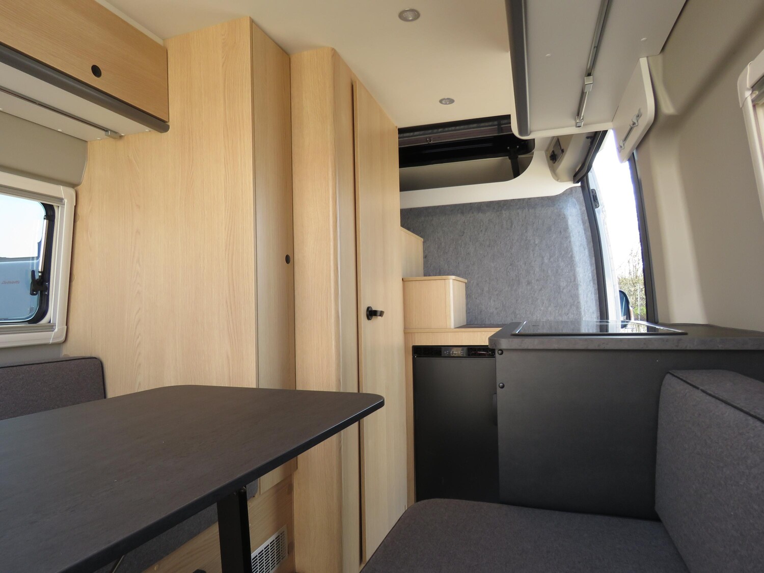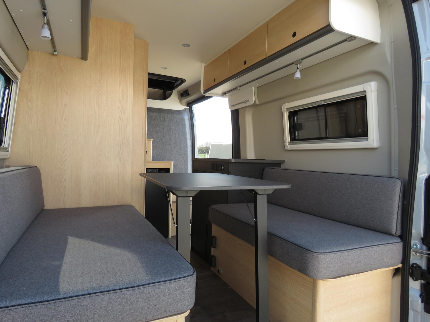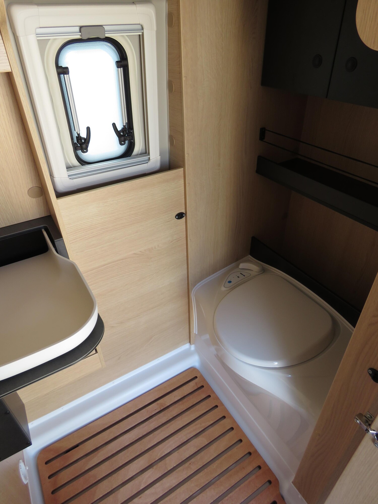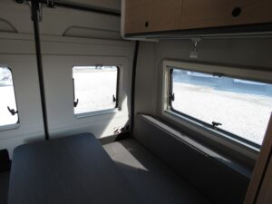 - Schiebefenster in Fahrtrichtung hinten rechts (inkl. Verdunklungsrollo und Fliegenschutz)