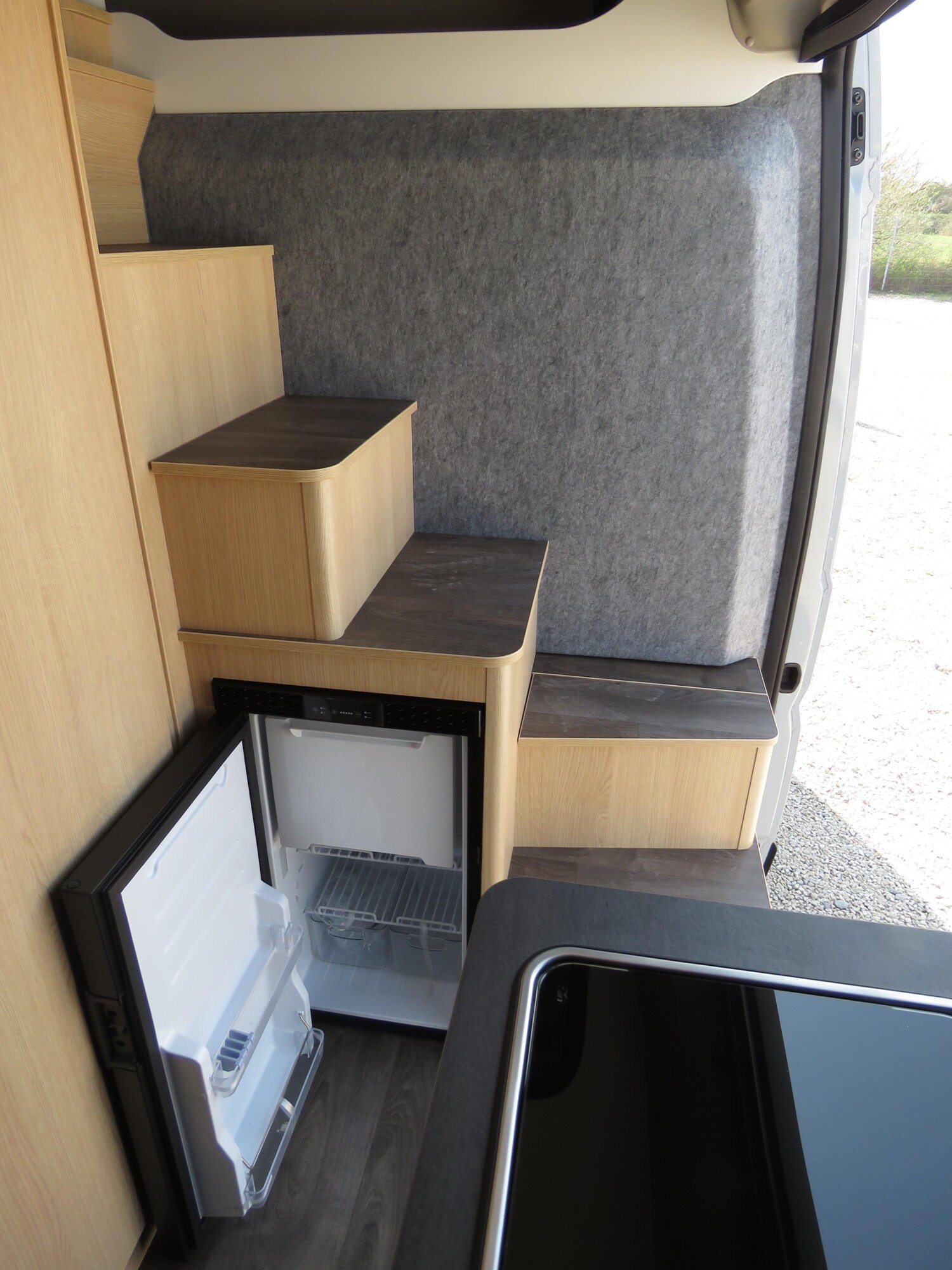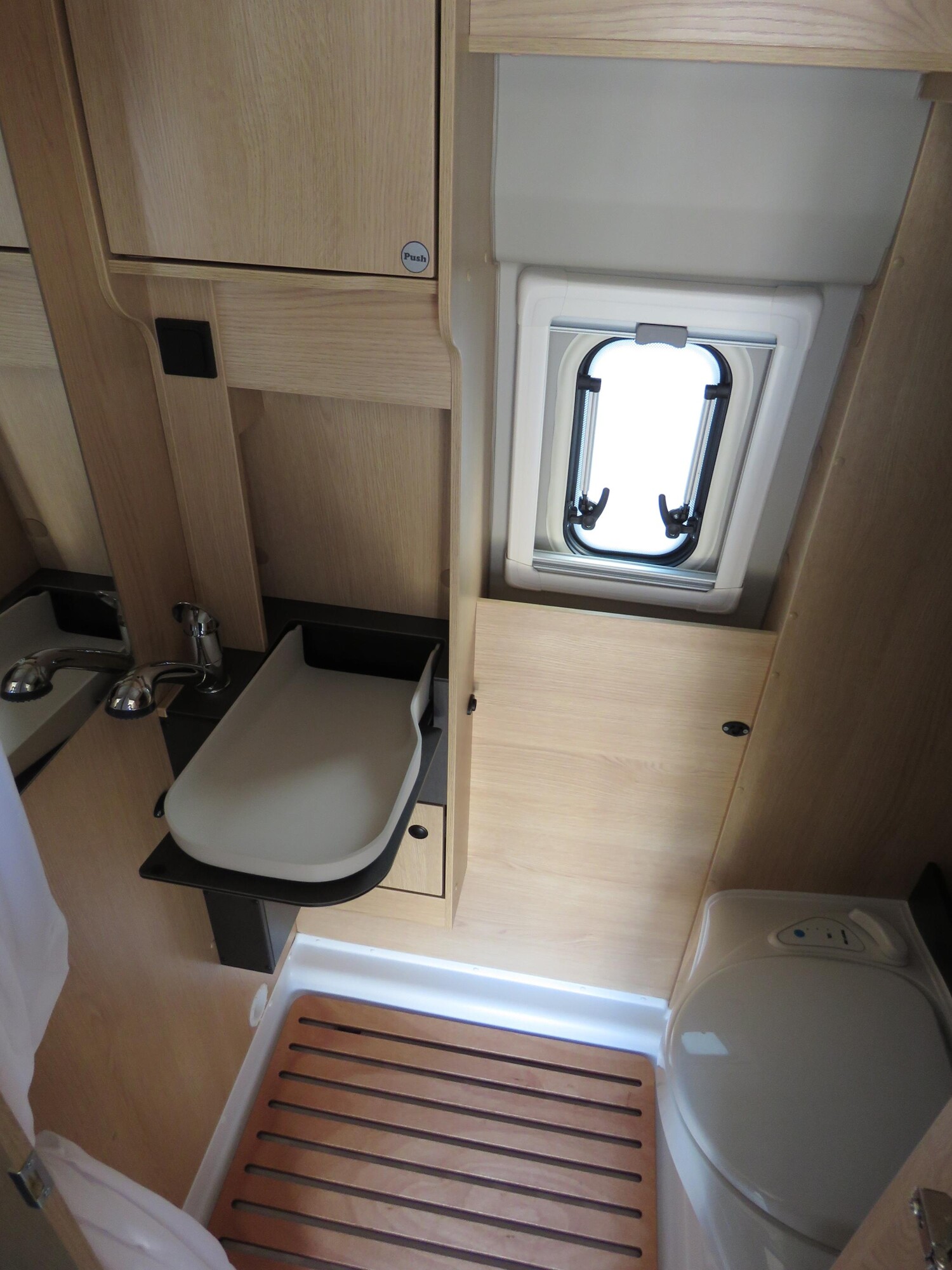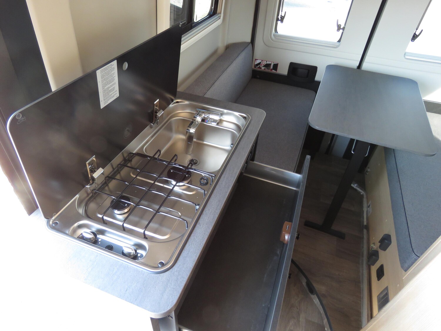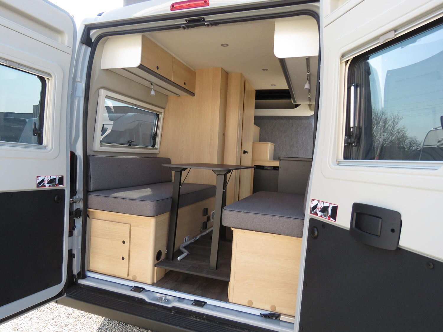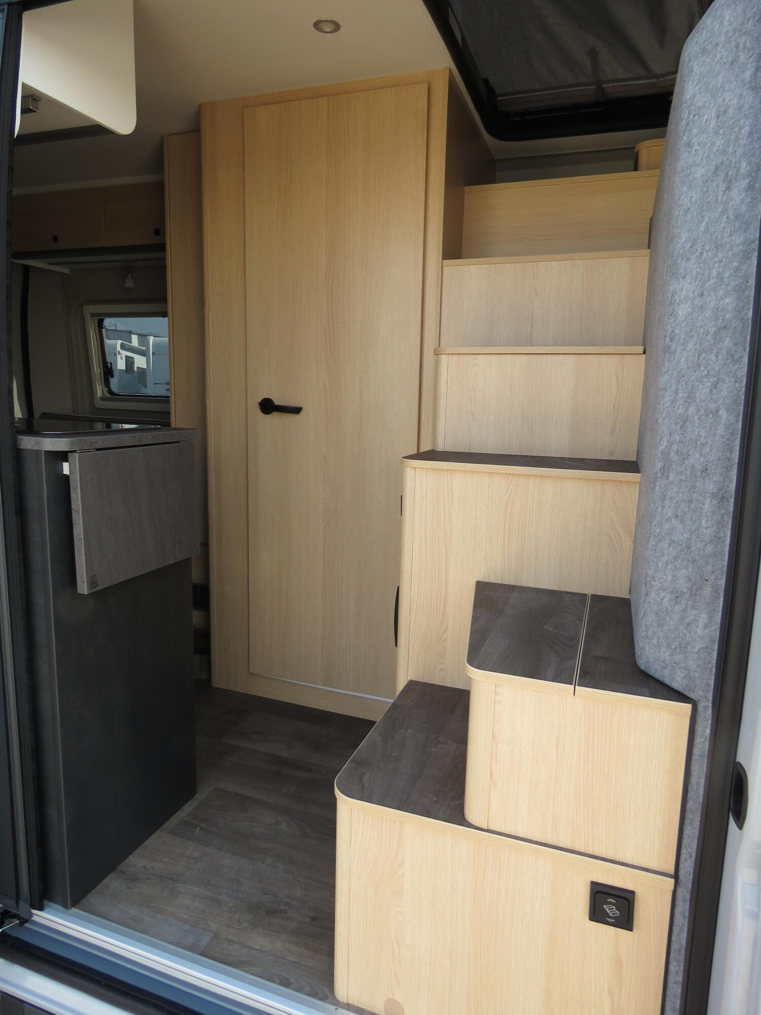 - Schiebefenster in Fahrtrichtung hinten rechts (inkl. Verdunklungsrollo und Fliegenschutz)