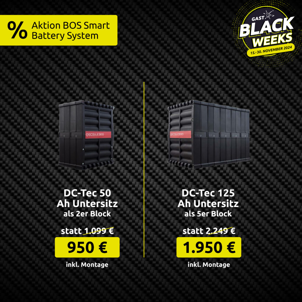 Darüber hinaus können Sie beim Einbau des BOS Smart Battery System Ah Untersitz als 2er oder 5er Block kräftig sparen: