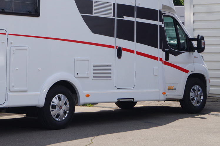 Ihre Fahrräder verstauen Sie im Wohnmobil am besten in der Heckgarage. Hier stehen Sie sauber, trocken und geschützt vor neugierigen Blicken. Mit einer Schiene oder speziellen Aufnahmen für die Vordergabeln sind die Räder auch gut gesichert. Darüber hinaus bietet sich ein am Heck montierter Fahrradträger an. Die meisten Fahrzeuge verfügen über Befestigungspunkte, auch hierzu beraten wir Sie gerne. Mit Schraubklemmen oder Gurten werden die Rahmen der Fahrräder befestigt, Gurte halten die Räder in den Schienen. Wer möchte, kann sich darüber hinaus mit einem Überzug gegen Nässe oder Schmutz ausstatten, den Sie (wie viele andere Dinge) in unserem Zubehörshop erhalten. Beim Wohnwagen hingegen hat sich der Transport auf Radträgern am Heck des Caravans nicht bewährt. Fahrversuche haben gezeigt, dass die Zusatzlast ganz hinten negative Auswirkungen hat. Der Radtransport auf dem Autodach ist aktuell die beste Lösung, da sich eine schwere Beladung des Zugfahrzeugs auf die Fahrstabilität des gesamten Gespanns auswirkt. Für schwere e-Bikes kann darüber hinaus der Transport mit einem Deichselträger eine Alternative sein.
